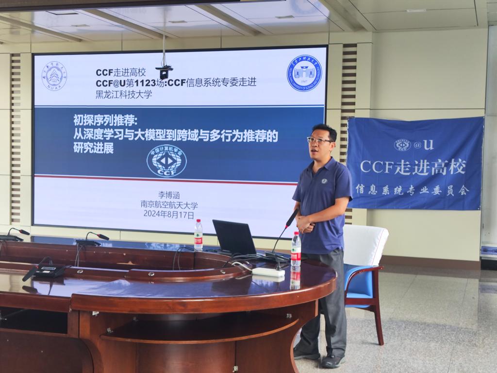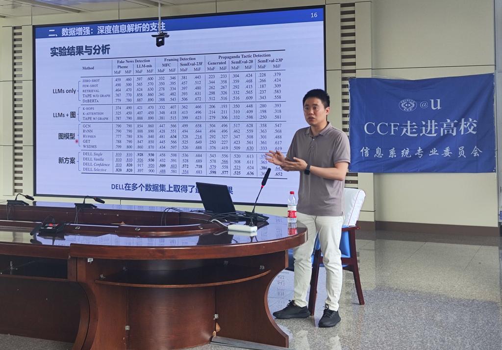 开幕式后,国防科技大学赵翔教授、广州大学杨世宇教授、南京航空航天大学李博涵副教授,分别以《解锁大模型的应用创新:数据增强、推理引导与协作优化》《从摩斯码到大语言模型:数据压缩技术的研究进展与展望》和《初探序列推荐:从深度学习与大模型到跨域与多行为推荐的研究进展》为题进行了学术报告,为参会师生分享了各自的研究成果。