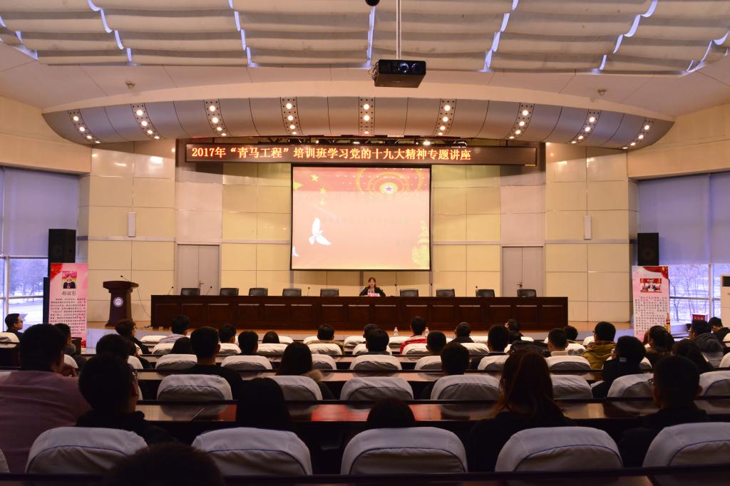 为更好的学习贯彻党的十九大精神,11月21日,由校团委主办,研究生与本科生联谊会承办的第八十二期“思想的声音”讲坛在【官网】办公楼报告厅举行,党的十九大代表、抚顺社区党委书记郝丽影围绕参加党的十九大感受与青年学生进行了深入交流,并就十九大精神进行讲解。【官网】校级学生组织骨干成员、“青马工程”骨干培训班学员、“北极星”大学生精英班学员等280余名青年学生参加了此次活动。【官网】党委副书记张明华与郝丽影亲切交流,校团委书记薛立刚、周恩远老师聆听讲座。