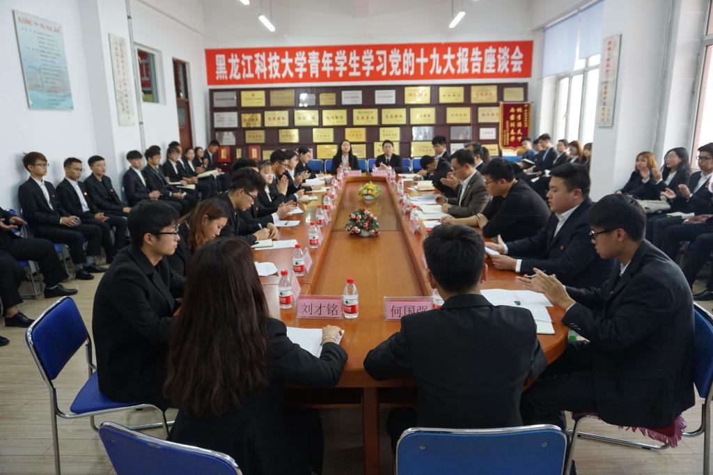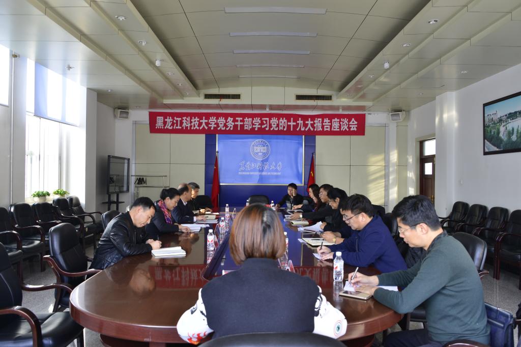 10月24日下午,【官网】党务干部学习党的十九大报告座谈会在办公楼6001会议室召开。校党委副书记陈桂芝出席座谈会,与大家交流了学习体会,并对院(处)级党组织书记和党支部书记如何贯彻落实好十九大精神提出了要求。矿业工程学院党委书记赵喜江、环化学院党委书记周国江、电信学院党委书记王立云、经济学院党委书记张宝成、人文学院党委书记林艳、国际教育学院党委书记邬承斌、理学院党委书记王建国,电气学院教师党支部书记苏勋文、管理学院教师党支部书记戚洪亮、建工学院教师党支部书记王宝君、计算机学院教师党支部书记廉龙颖在座谈会上做了专题发言。座谈会由党委常委、组织部部长陈玉平主持。