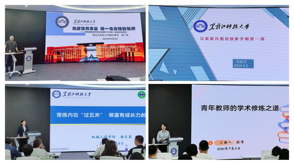 在名师交流专题中,校教学名师、督学周广林教授以“热爱教育事业做一名合格的教师”为题,强调教师不能只做传授书本知识的教书匠,而要成为塑造学生品格、品行、品味的“大先生”。国际交流合作处处长、省教学名师母丽华教授“以崭新风貌迎接新学期第一课”为题,通过指导教师如何导课、如何讲好课、课后教学反思及师生互动等环节将自己积淀三十年的教学经验传授给新教师。机械工程学院院长、省青年教学名师唐庆菊教授以“苦练内功‘过五关’做富有成长力的青年教师”为题,为新入职教师讲授为什么要提升教师的成长力和怎样提升教师成长力。管理学院副院长张倩教授以“青年教师的学术修炼之道”为题,与大家分享自己的科研成长历程,提醒青年教师做学问要修心、修身、修业。