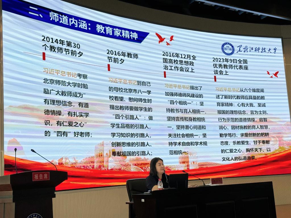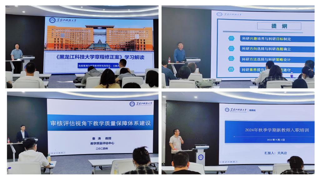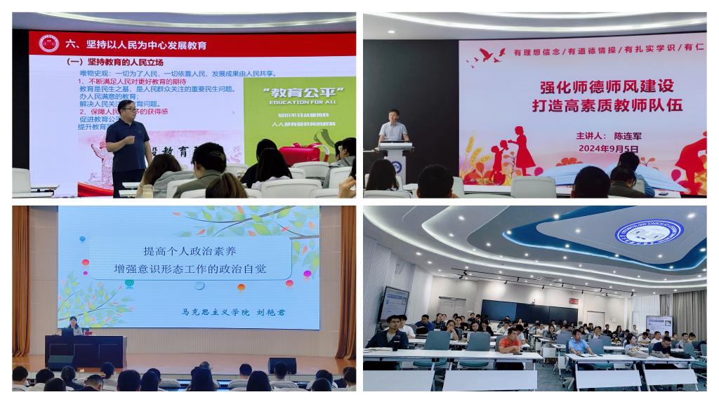 在思想政治与职业素养提升专题中,马克思主义学院院长冯德军以“习近平总书记教育重要论述”为题,明确了德育在教育中的重要地位。人事处处长陈连军以“强化师德师风建设,打造高素质教师队伍”为题,强调新入职教师要牢固树立“师德无小事、小处见师德”的意识和观念。马克思主义学院副院长刘艳君以“提高个人政治素养,增强意识形态工作的政治自觉”为题,倡导新入职教师要坚定理想信念。