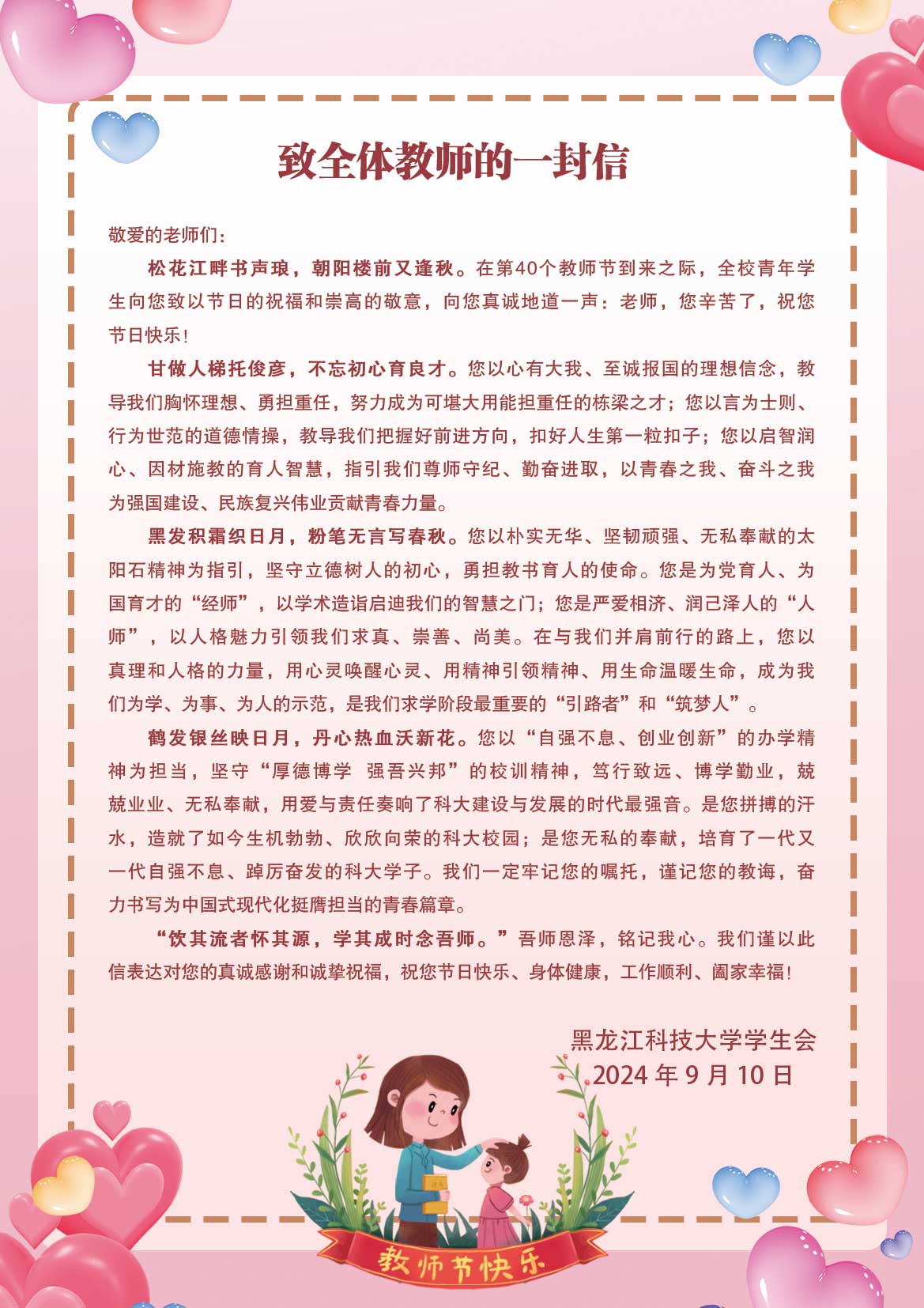 老师您辛苦了| 全校青年学生致全体教师的一封信