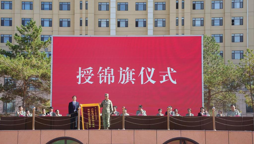 党委副书记桑玉军代表学校向承训单位赠授锦旗。