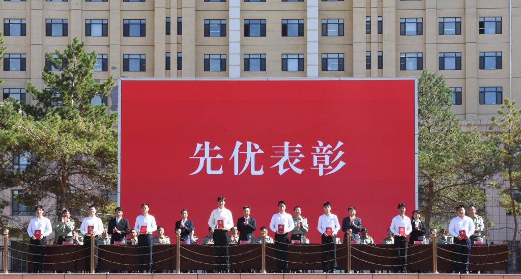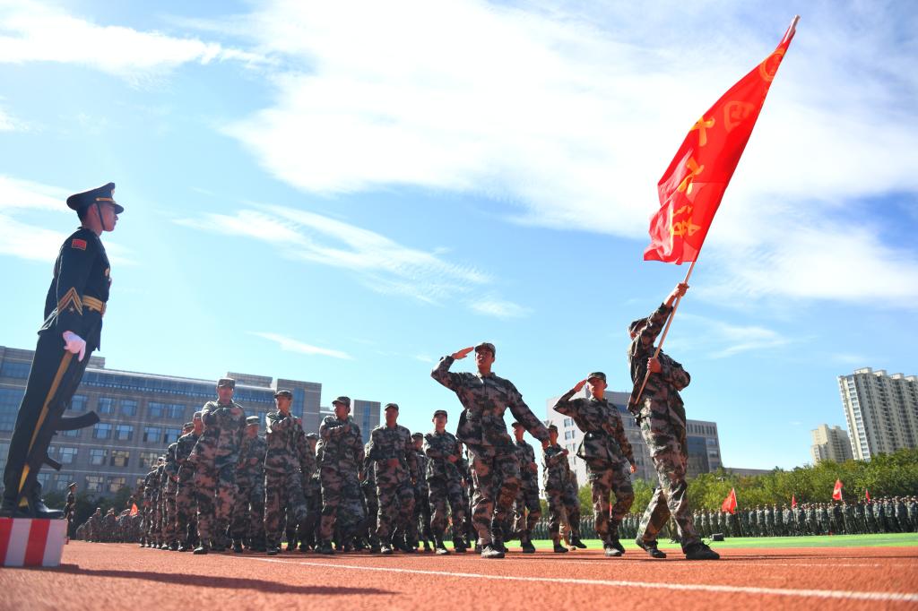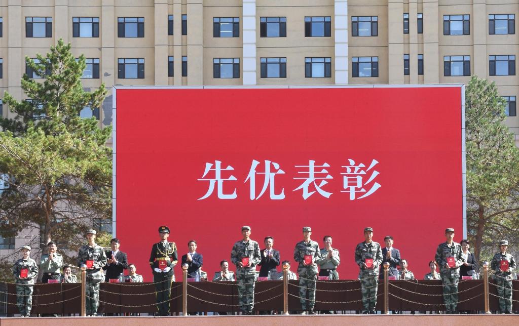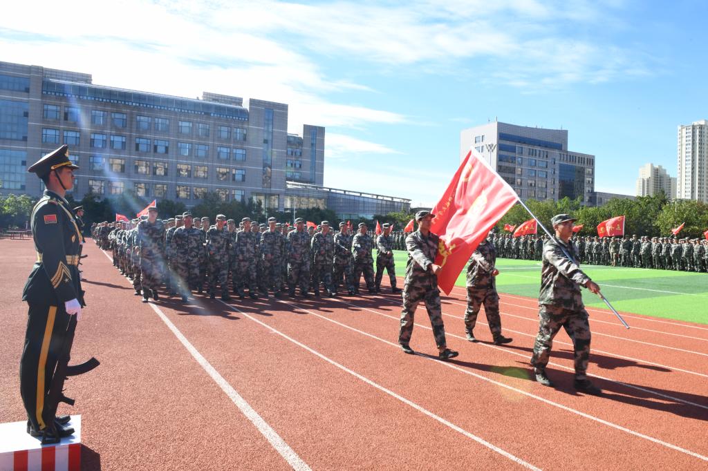 9月13日上午9时,【官网】2024级学生军训总结大会在体育文化休闲广场举行。驻哈某部队领导,校党委书记周宏力,党委副书记桑玉军,党委常委、宣传统战部部长王洪秋,党委常委、组织部部长王志磊,学生处、教务处、校团委等部门负责人,各学院主管学生工作领导、新生辅导员、全体2024级本科学生参加了总结大会。总结大会由校团委书记、军训旅政委宋玉彬主持。