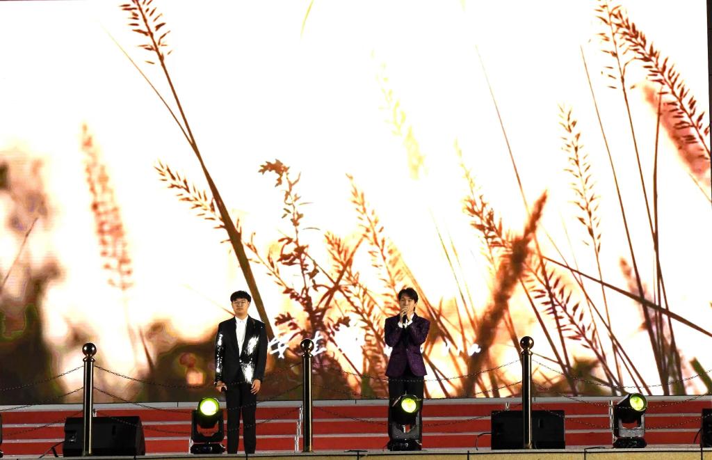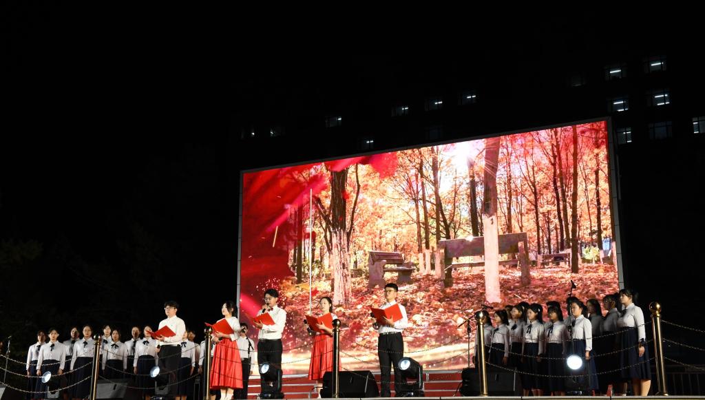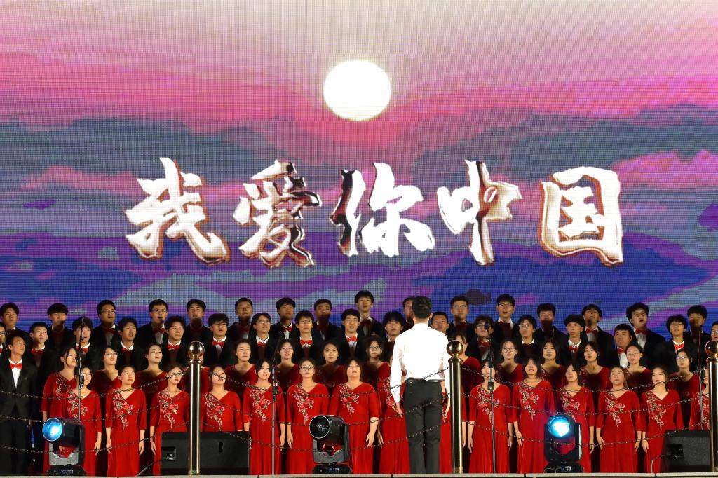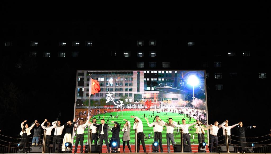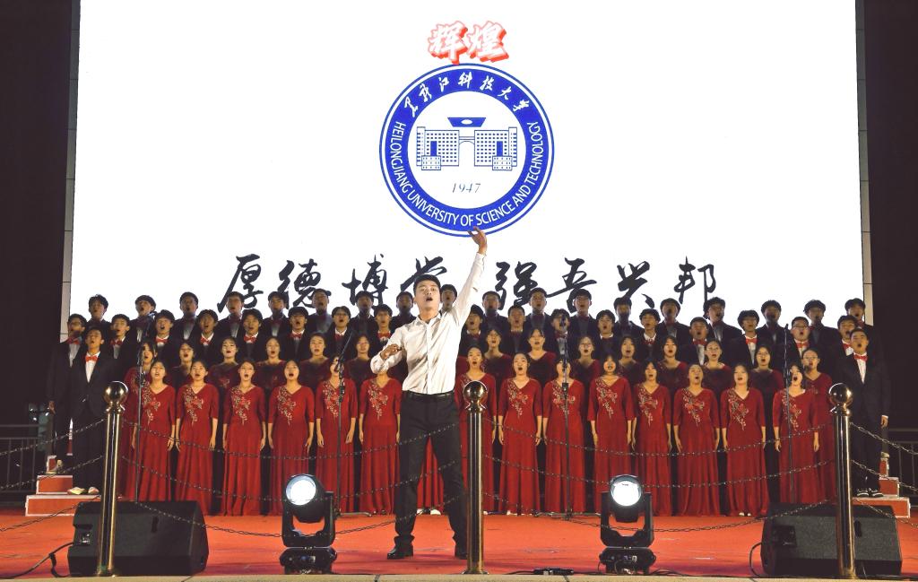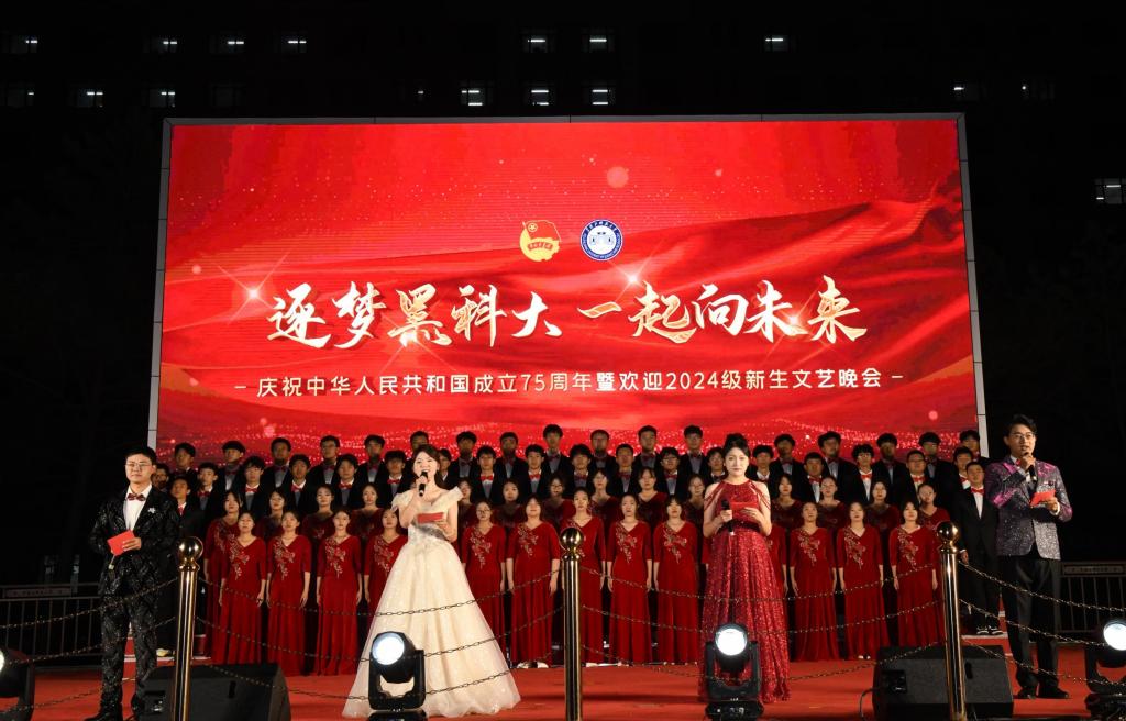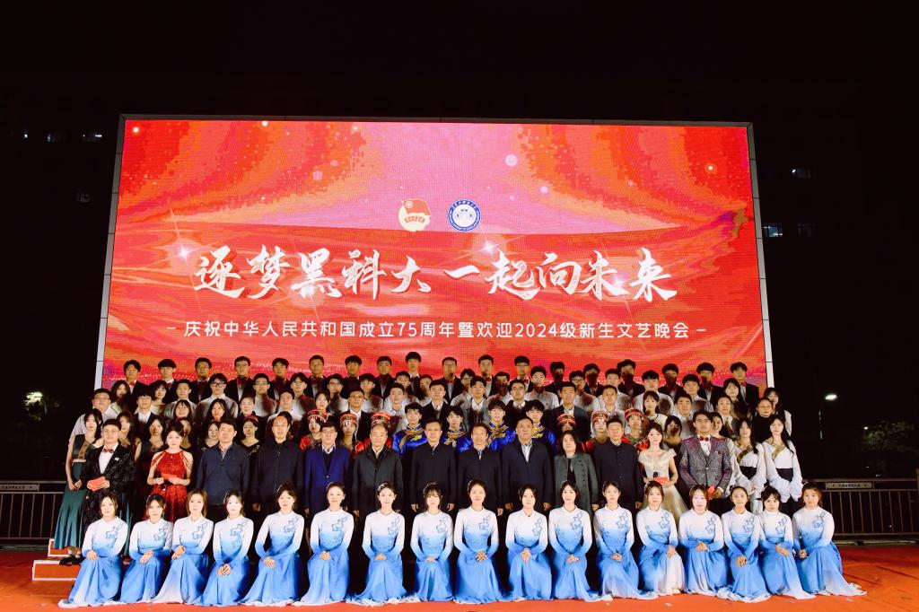 为热烈庆祝中华人民共和国成立75周年,激励和引导全校师生大力弘扬爱国主义精神,鼓舞和号召2024级新同学以积极向上、奋发进取的姿态开启人生新的征程,9月23日18:30,学校在体育文化休闲广场隆重举办“逐梦黑OD在线、一起向未来”庆祝中华人民共和国成立75周年暨欢迎2024级新生文艺晚会。校党委书记周宏力,校党委副书记桑玉军,副校长陈凯云、张宝成、赵振民、谭旭红,纪委书记王延高,党委常委、宣传统战部部长王洪秋,党委常委、组织部部长王志磊,学校办公室、学生处、教务处、校团委等部门负责人,各学院党委书记、副书记,全校专职学生工作干部与5000余名2024级新生共同观看了晚会。