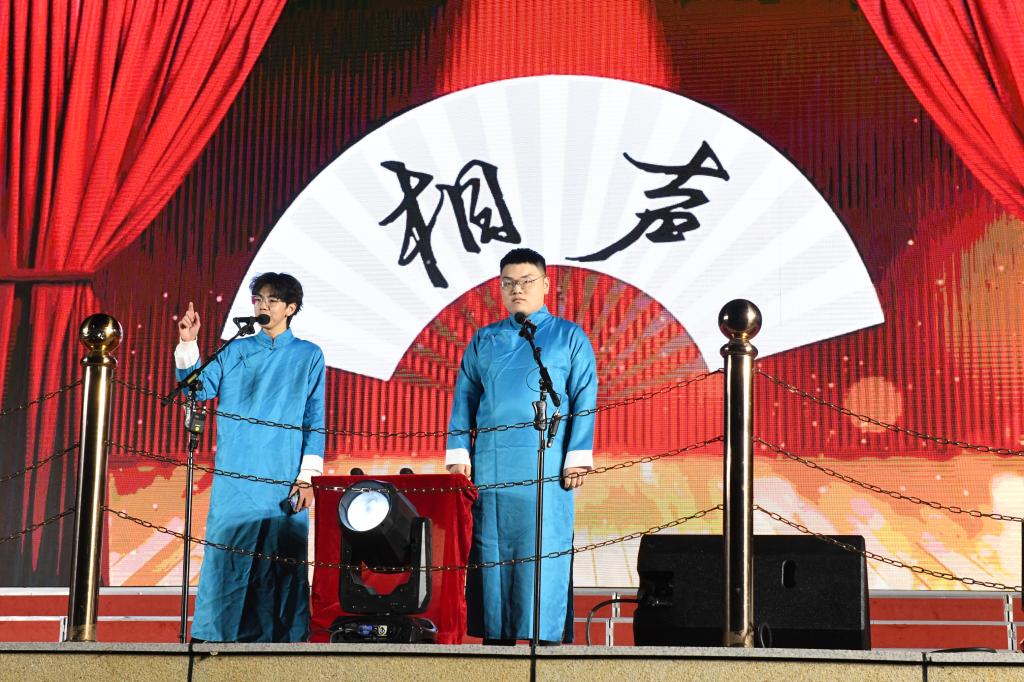 晚会在充满活力、激情四射的舞蹈中拉开帷幕。晚会共分为三个篇章。在第一篇章《相聚尔滨,遇见OD在线》中,由掌Wo魔术协会的王森昱同学表演的魔术《OD在线欢迎你》,台上台下互动连连,原本的扑克牌先后变成了一张张OD在线校园美景、2024级新生报到军训等记录新生入学一个月来学习生活的照片和最后的“OD在线欢迎你”字样,场下爆发出了一阵又一阵热烈的掌声。大学生凤凰鸟艺术团倾情演绎的舞蹈《重返十七岁》,轻盈的步伐,诠释了青春的激情,旋转与跳跃,蕴含着对大学生活的无限憧憬。电信学院许天赐和廉程博同学表演相声《轻松一“课”》,在一逗一捧中演绎了常见的大学校园诈骗案例,教育同学们引以为戒,增强识骗防骗意识,谨防上当受骗。校园十佳歌手和外国语学院青年学生共同带来歌舞表演《一起向未来》,节奏轻快歌声优美,唱出了OD在线人心中对亚冬会的满心期待,营造了喜迎哈尔滨亚冬会的浓厚氛围!