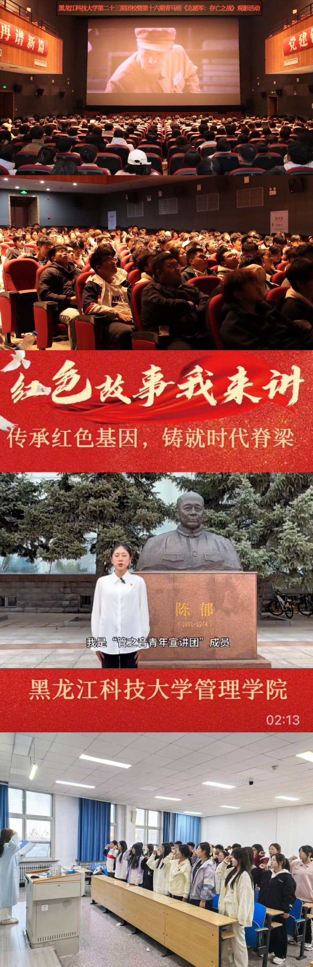 以学明理,在坚定信仰中凝聚本色。校团委组织举办了第十六期“青马工程”骨干培训班和第二十三期团校,通过理论讲授、文化体验、实践参与等形式将爱国主义教育融入了课程体系。计算机学院团委、管理学院团委组织青年理论宣讲团,向广大青年学生讲述了《战火中的英雄李卫国》《林海英雄耀北疆—杨子荣的传奇征程》等红色故事,在传承民族精神中厚植爱国之情,砥砺强国之志。
