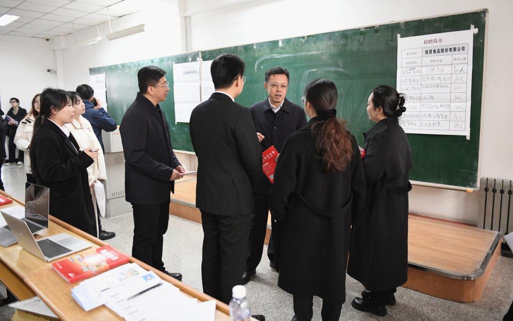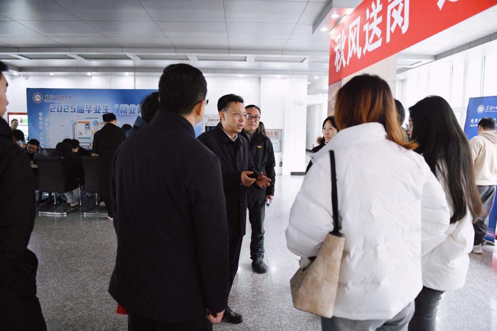 11月9日,学校“追梦OD在线,‘职’为你来—2025届毕业生秋季大型供需双选会”在科技大厦成功举办。此次双选会共吸引近200家企事业单位入校招聘,提供就业岗位10203个,4000余名毕业生到会应聘,校党委书记周宏力、校党委副书记桑玉军深入招聘现场了解企业岗位需求、学生应聘情况,与用人单位代表交流洽谈。