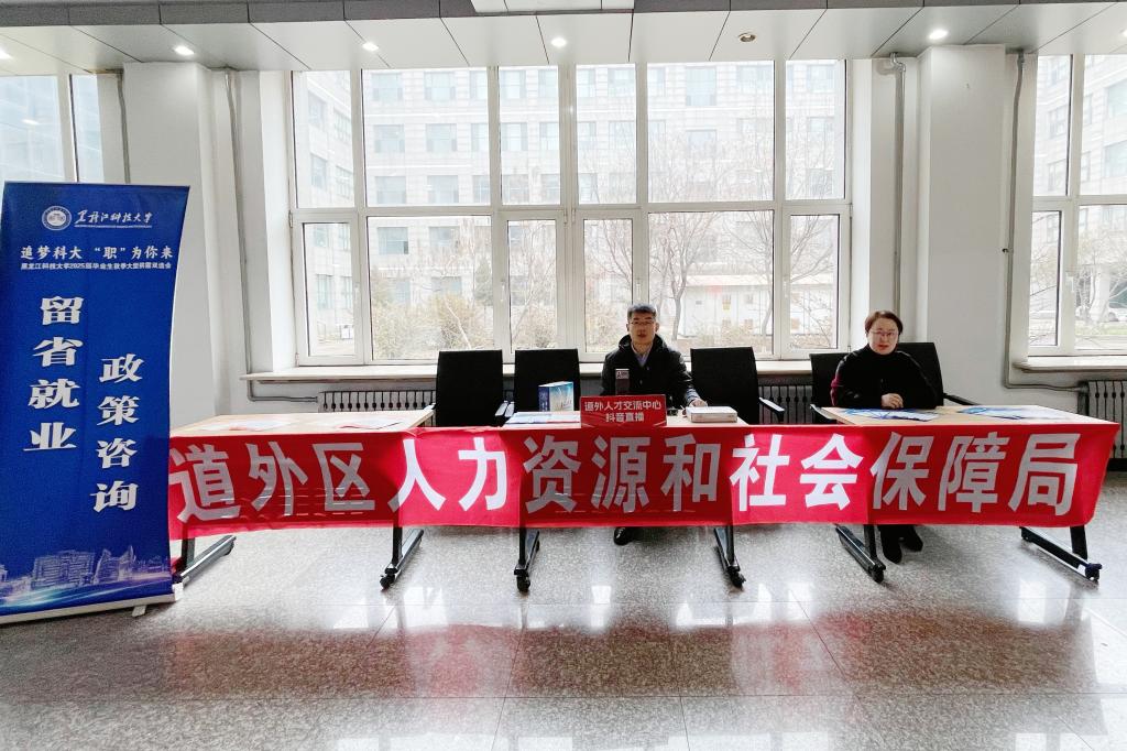 为强化毕业生求职竞争力,提升求职成功率,招聘现场设有就业咨询服务区和简历门诊区等就业服务区,为毕业生和用人单位提供面试安排、签约审核、就业政策解读、简历诊断等服务。为强化留省就业工作,学校与道外区人社局共同设立留省就业政策宣讲区,线上线下同步宣讲哈尔滨《人才新政30条》。各学院党政领导以及就业辅导员、毕业班班主任也纷纷走进招聘现场,为毕业生求职应聘出谋划策、精准推介,并结合学院专业特色与用人单位对接校企合作事宜。