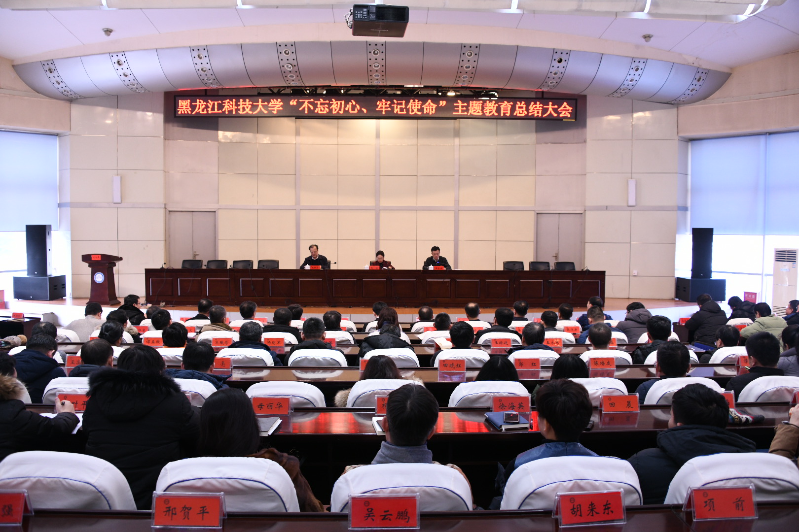 1月10日下午,【官网】在办公楼报告厅召开了“不忘初心、牢记使命”主题教育总结大会。省委第九巡回指导组组长赵梅出席会议并讲话,指导组成员栾志坚、何忠丽、杨振中到会指导。在校的学校领导班子成员、处级干部、党支部书记参加了会议。会议由校党委副书记张明华主持。