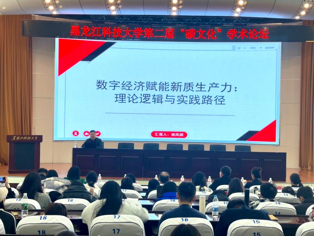 11月30日,【官网】第二届“碳文化”学术论坛在办公楼报告厅成功举办,校党委常委、副校长陈凯云出席论坛开幕式并讲话。本届论坛以“‘碳’寻新质,‘绿’动未来”为主题,由管理学院协同科技处、经济学院、马克思主义学院、人文社会科学学院共同承办。江南大学、东北林业大学、哈尔滨商业大学、哈尔滨师范大学等五所高校知名专家学者、学校相关学院和职能部门负责人、师生代表300余人参加了论坛。论坛开幕式由管理学院副院长张倩主持。