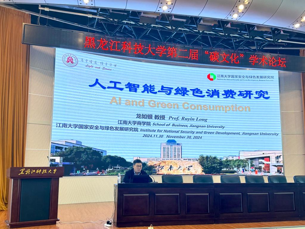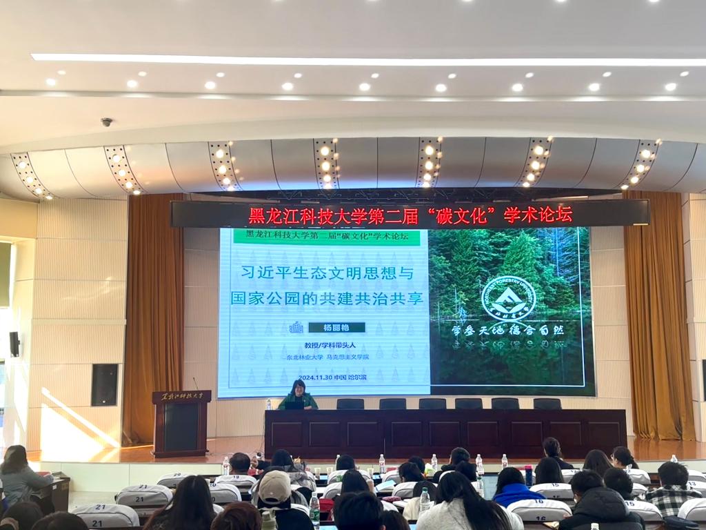 论坛分为主旨报告和研究生分论坛两个单元。上午主旨报告单元邀请江南大学国家安全与绿色发展研究院院长陈红教授、江南大学商学院龙如银教授、哈尔滨商业大学金融学院院长姚凤阁教授、哈尔滨师范大学经济管理学院李惠芹教授、东北林业大学马克思主义学院杨丽艳教授五位专家学者作了精彩学术报告,两位硕士研究生分享了学术成果。下午研究生分论坛由管理学院和马克思主义学院平行召开。论坛现场交流气氛热烈、学术氛围浓厚,为师生搭建了思想交流与学术碰撞的桥梁,深化了研究生对“碳文化”理论与实践的理解,促进了学术成果的交流与分享。