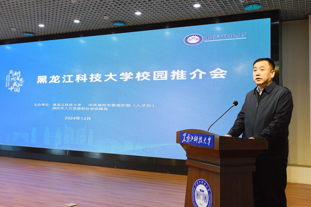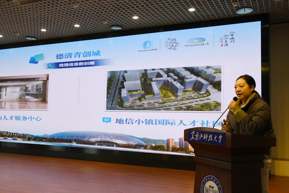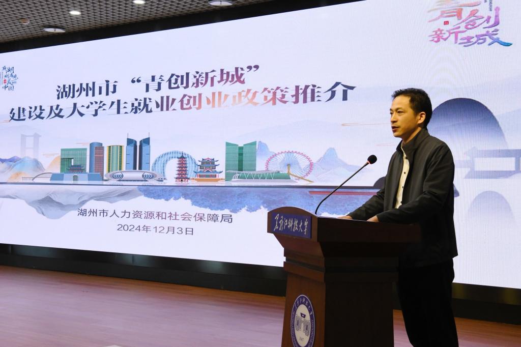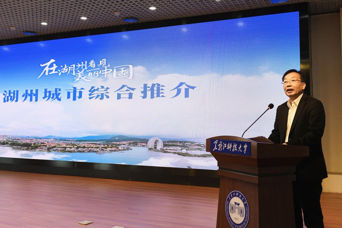 夏坚定作湖州市城市推介,介绍了湖州的区位优势、市情市貌、产业发展、园区建设、就业环境等情况,诚挚欢迎【官网】优秀学子能喜欢湖州、爱上湖州、扎根湖州;湖州市人力资源和社会保障局党组副书记、副局长胡培强作湖州“青创新城”建设及大学生就业创业政策和人才政策宣讲;湖州市企业代表“浙江先登绿能新材有限公司”“莫干山人才服务中心”分别作人才需求推介和青创项目需求推介。