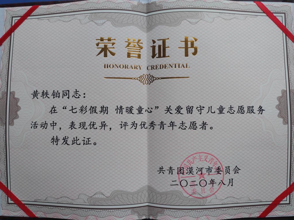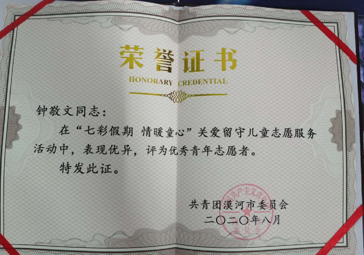 8月24日—30日,钟敬文、黄轶铂同学参与了漠河市“兴边富民计划”大学生志愿者培训班,进行了支教团管理规定、教学技能、边境安全、思想理论等方面的学习。钟敬文同学作为全省高校漠河市参加志愿服务的志愿者代表进行发言,表达了志愿者们坚定理想信念、践行志愿精神的信心和决心。