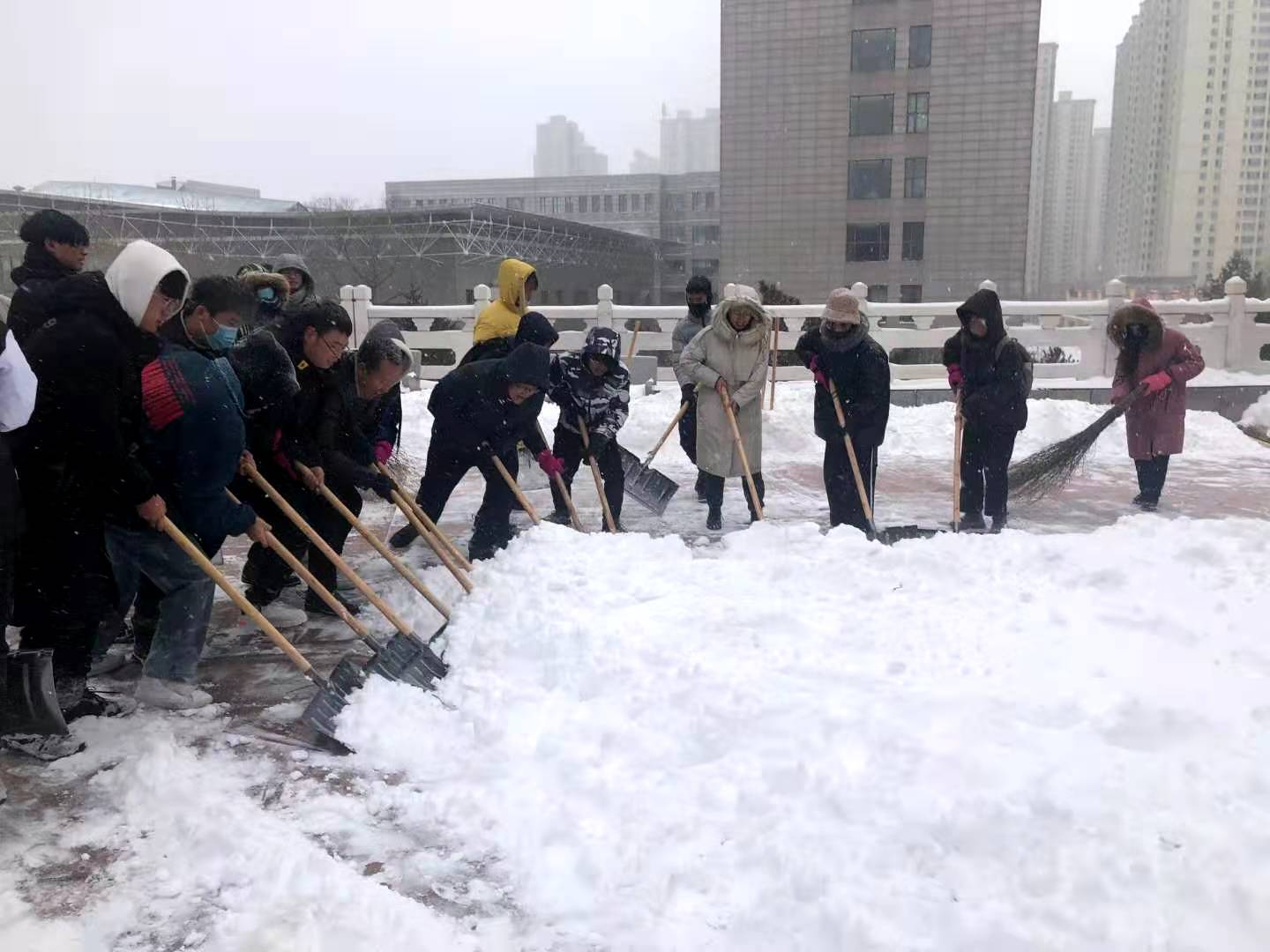 师生一同清扫积雪