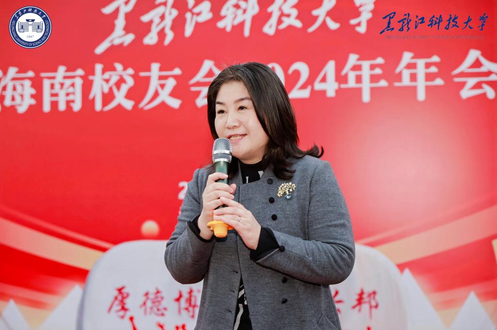 最后,谭旭红代表学校和校友总会讲话。她向本次年会的成功举办表示热烈的祝贺,向广大海南校友表示良好的祝愿,对海南校友会坚持“开放、包容、互助、奉献”的价值理念,以“联系母校、服务校友”为宗旨,一年来积极开展丰富多彩的活动给予充分肯定。她希望海南校友会通过本次年会,继续秉承母校“厚德博学 强吾兴邦”的校训,发扬“自强不息、创业创新”的办学精神,紧紧依靠和团结广大校友,整合各方资源,逐步将海南校友会构筑成有高度、有广度、有深度、有温度的OD在线人海南之家。