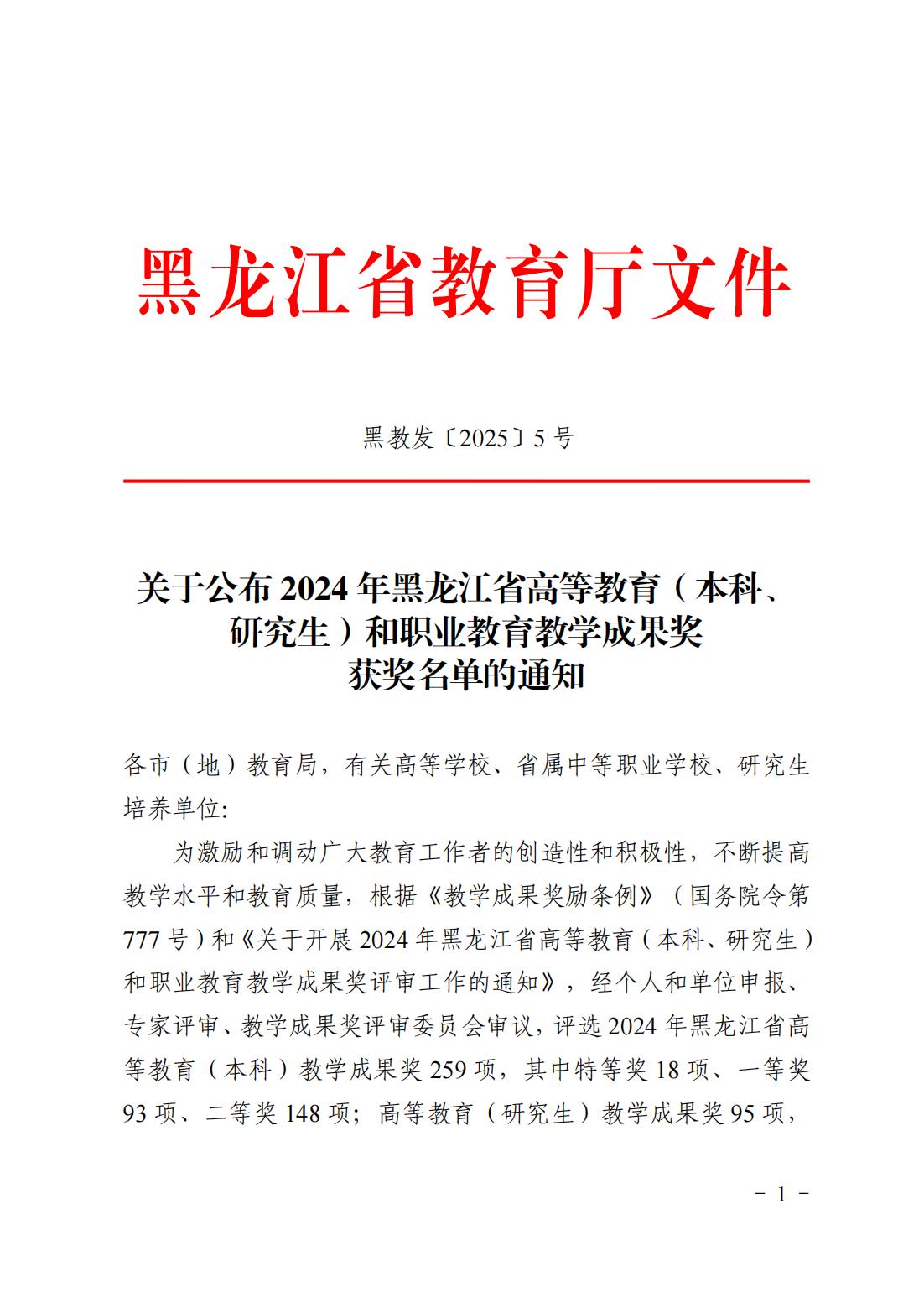 近日,省教育厅公布关于2024年高等教育教学成果奖评选结果,【官网】推荐参评的教学成果(本科)喜获佳绩,共获奖8项,一等奖2项,二等奖6项。