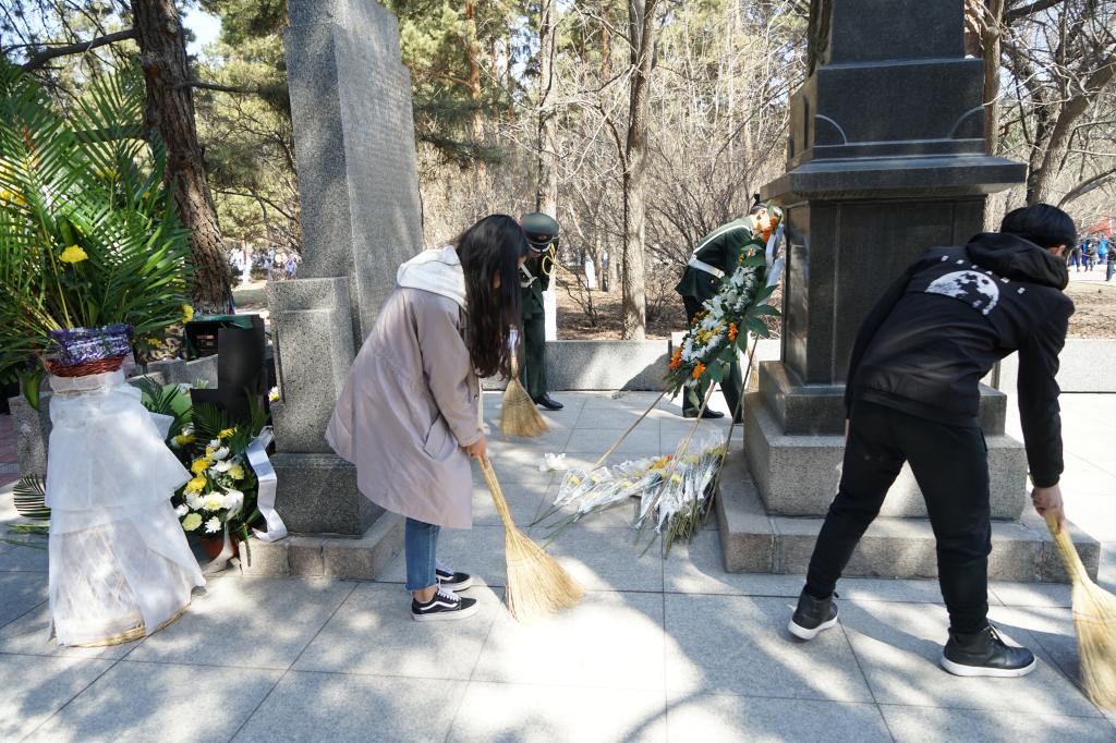 在清明节来临之际,为了深切缅怀革命先烈,弘扬爱国主义精神,4月3日早晨,【官网】全体专职团干部、青马工程班学员、校级学生组织骨干成员、校大学生仪仗队、校青年志愿者协会等300余名师生参加了主题升旗仪式。然后,来到了哈尔滨“烈士陵园”开展了弘扬爱国主义精神清明节祭扫活动。