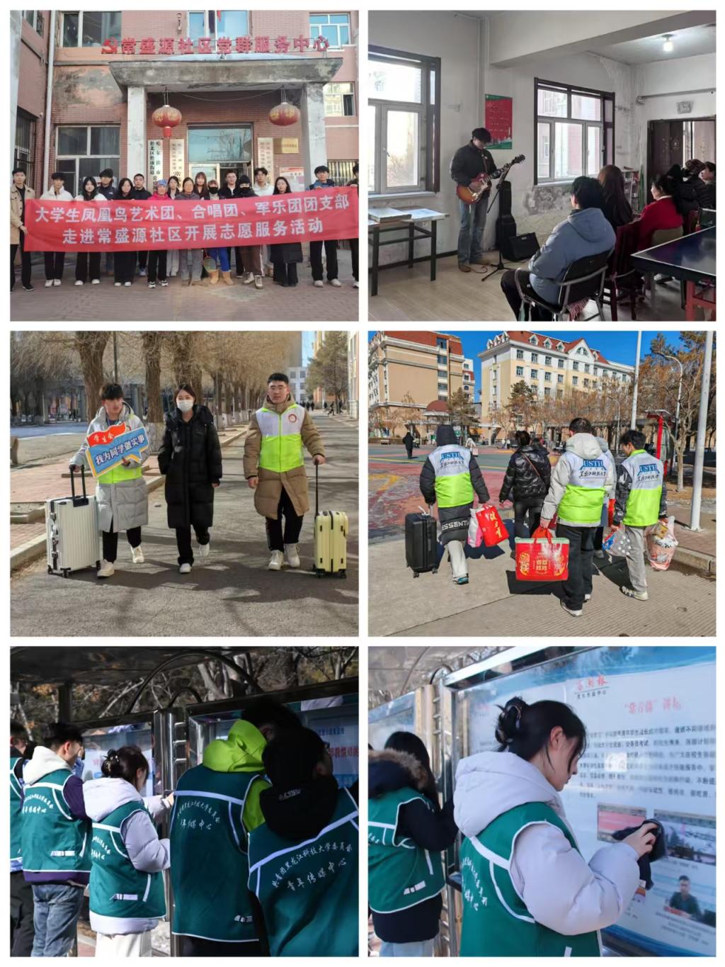 校学生会团支部践行“全心全意、服务同学”为宗旨,深化“我为同学做实事”实践活动,以学生假期返校为切入点,为同学们搬运行李、物品,以实际行动诠释了“全心全意”为同学服务的责任担当;大学生凤凰鸟艺术团、合唱团、军乐团团支部走进常盛源社区,通过表演歌曲《裂缝中的阳光》、钢琴曲《梦中的婚礼》、二胡独奏《赛马》等节目,为社区群众献上了一场生动的文艺演出;青年传媒中心团支部以“我为学校换新‘颜’”为主题,擦拭校内宣传橱窗,引领了OD在线青年爱校荣校的新“锋”尚。