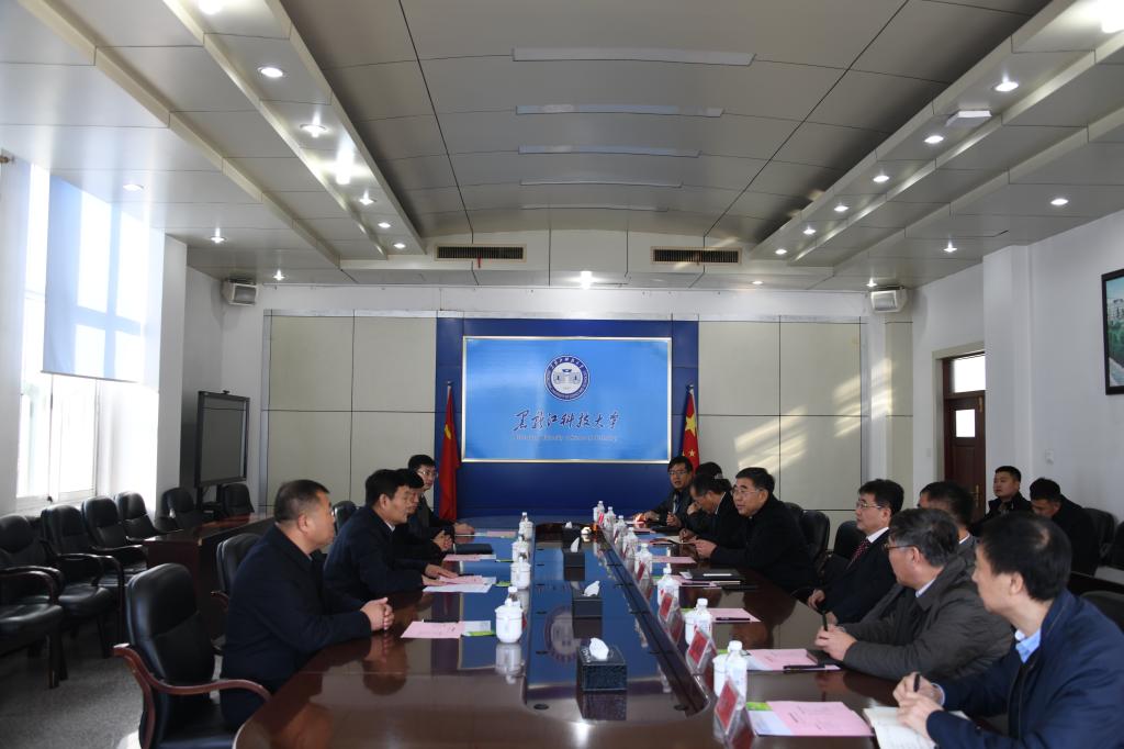 会前,校长郝传波、校党委副书记于成学、副校长张国华,以及相关单位和部门负责人和龙煤集团总经理王佳喜一行在信息楼6001会议室就协同创新、产学研合作、联合培养学生等问题进行了座谈和交流。