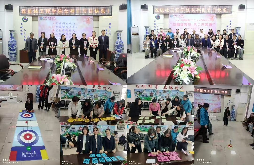 机械工程学院工会开展了“巾帼绽芬芳·活力向未来”主题庆祝活动,学院班子成员和全体女教职工参加了活动。活动中,学院党委书记吕刚以原创诗词向全体女教职工致以节日问候和美好的祝愿,充分肯定了学院女教职工在教书育人、审核评估、创新服务中所做的贡献,勉励女教职工继续发挥“半边天”作用;学院党委书记吕刚、院长齐立涛共同为校“三八红旗手”获得者献花;最后进行了旱地冰壶、卡牌接龙、套圈等趣味活动,女教职工们在轻松愉悦的氛围中放松身心,享受节日带来的喜悦与快乐。