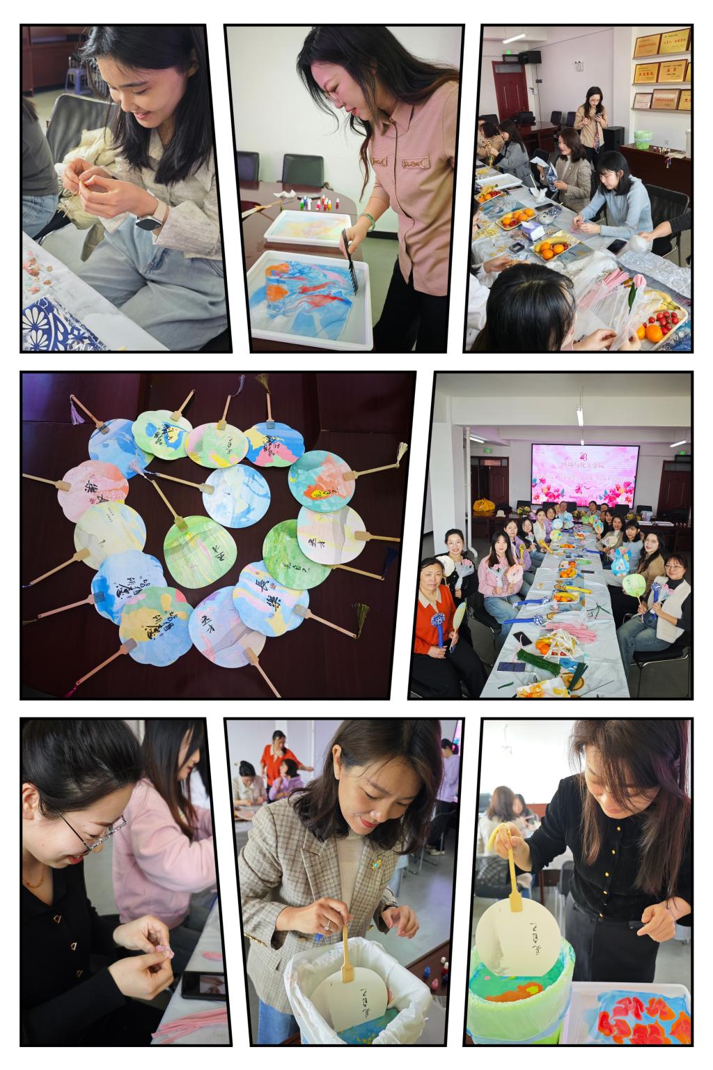 电子与信息工程学院工会举办了“‘花’样巾帼 ‘漆’彩纷呈”手工DIY活动。女教职工们在学习了漆扇的操作步骤后,纷纷投入漆扇的创作中,她们精心挑选扇面,将漆滴入水中,用竹签搅动水中的颜料,色彩迅速在水面上扩散,形成绚丽多彩的花纹,在颜色散开后将扇子缓缓放入水中为扇子上色,大家纷纷展示自己制作的漆扇,现场气氛热烈。通过此次活动,大家切身感受到了中国传统文化之美,活动后,学院工会为参加活动的女教职工颁发了“鲜花”作为纪念品。