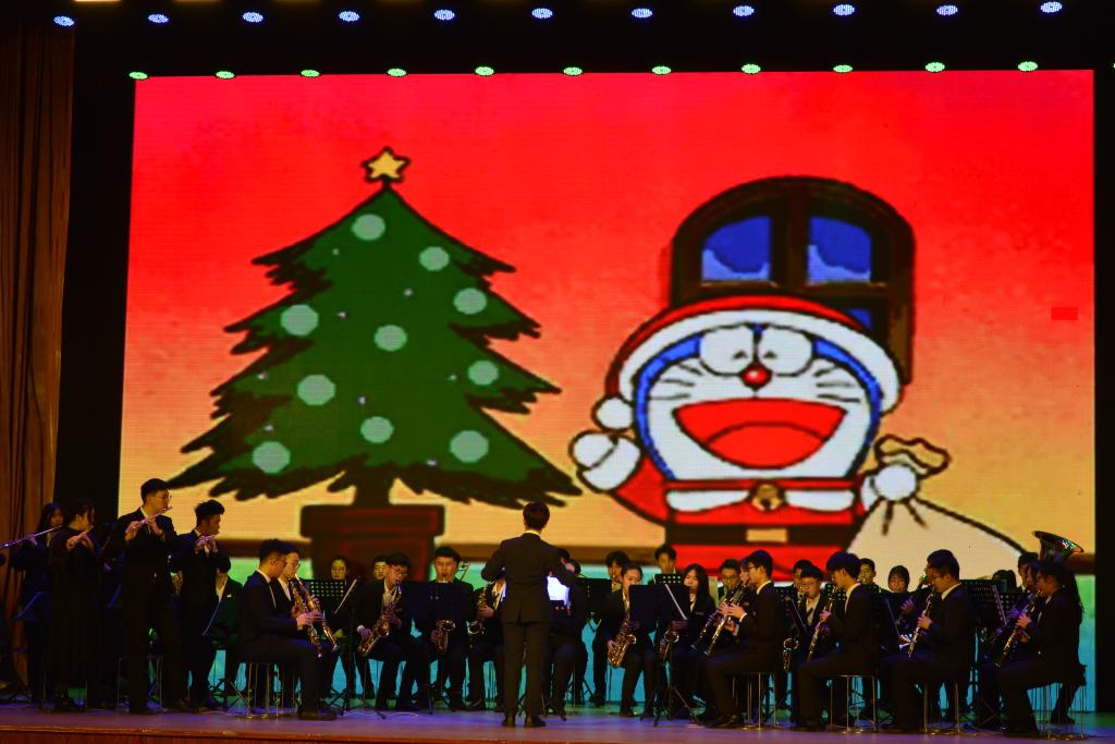 接着,民乐队将西洋音乐与中国传统音乐相结合,演奏了《菊花台》、《雨碎江南》、《春节序曲》三首中国风曲目,深受现场听众的喜爱。古筝重奏《丰收锣鼓》欢快热烈、钢琴小提琴合奏的《克罗地亚狂想曲》激昂高亢、铜管重奏的《啤酒桶波尔卡》富有动感、节奏欢快,将观众带入欢乐的海洋;一首家喻户晓、耳熟能详的《小叮当》带领大家找回童年的记忆,乐手们展现了不同乐器的特殊音色与独特魅力,现场听众爆发出阵阵掌声。