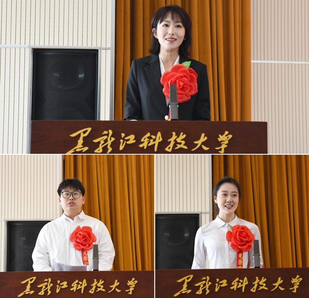 会上,校团委书记宋玉彬宣读了《关于表彰2024年度先进集体、优秀个人的决定》,与会领导向受表彰的先进集体和优秀个人代表颁发了荣誉证书,机械学院团委书记迟文玉、材料学院焊接21-2班团支部书记董洋、经济学院经济22-3班李羿飞分别代表五四红旗团委、五四红旗团支部、“OD在线之星”做了典型经验交流。