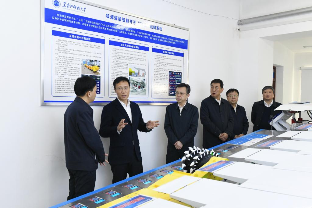 张起翔先后参观了智慧矿山学科交叉研究院、人才公寓、碳谷大厦、石墨研究院中试基地、校史馆、地质馆、矿业馆,重点考察了省“揭榜挂帅”重大科技攻关项目及“环大学大院大所创新创业生态圈支撑项目——碳谷大厦”建设情况。