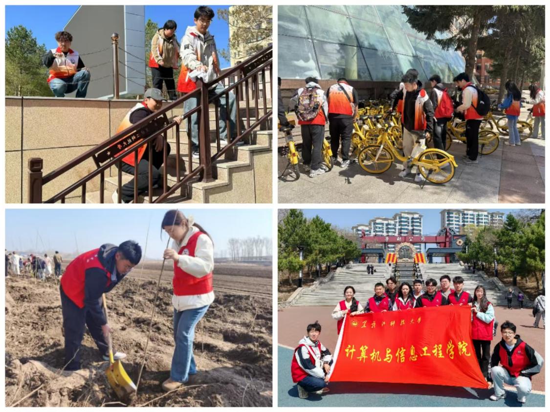 生活实践强技能,培养劳动品格。培养学生日常生活中的劳动习惯,让学生切身体会到劳动带来的光荣感、幸福感,共同营造安全、卫生、健康的校园环境。电信学院、材料学院、机械学院、经济学院组织学生开展校园环境卫生清理、共享单车摆放活动,同学们分工协作,用实际行动美化校园环境;计算机学院组织学生在哈尔滨市劳动公园亲身体验劳动实践,激发学生劳动热情,培养责任担当意识。电气学院组织学生在道外区永源镇开展绿色植树活动,积极倡导绿色可持续发展理念,培养建设美好家园的责任意识。