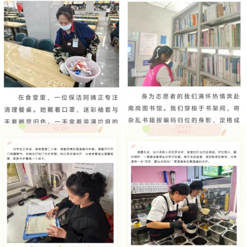校园活动促成长,激发劳动热情。积极创作主题劳动周活动新媒体作品,充分展现身边最美劳动者的劳动形象、劳动实践过程中的最美瞬间、学生劳动实践中的收获和感悟,激发学生崇尚劳动的意识和参加劳动的热情。计算机学院、外语学院、马克思学院组织学生围绕“最美劳动瞬间”主题,运用镜头捕捉校园、社区等场景中劳动者辛勤付出的精彩画面,并通过线上平台进行展示,激发学生创作热情和崇尚劳动、尊重劳动的责任意识;外语学院利用微信公众平台开设《丁香之声|读人物》专栏,选取各行业杰出人士,通过中英双语介绍,将爱国情怀与语言学习有机融合。