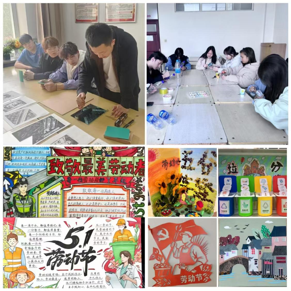 品牌特色树典型,强化劳动意识。积极创新劳动实践活动方式,结合学生兴趣爱好形成特色劳动实践活动,让学生在劳动中增长本领。安全学院、材料学院、理学院开展手抄报征集活动,引导学生们积极发挥创意、用画笔描绘劳动;环化学院、建工学院、马克思学院组织开展“变废为宝”活动,通过精心设计与巧妙改造,赋予废旧物品新的生命,创作出了丰富多彩、形式多样的手工作品;计算机学院、管理学院、人文学院开展版画、手工创作活动,深化学生对工匠精神的认知。