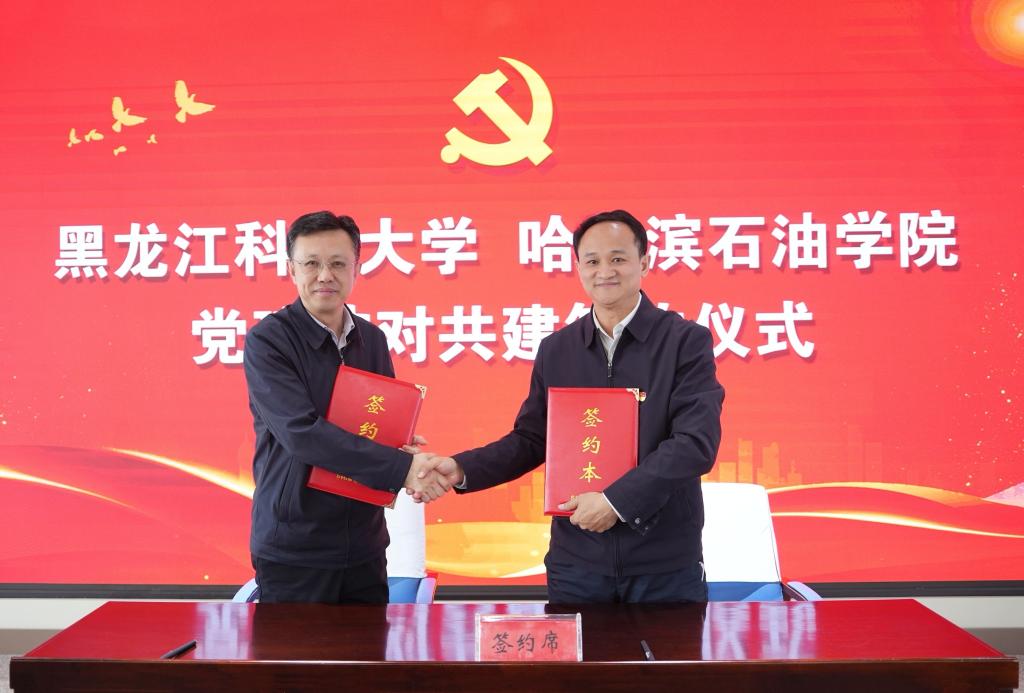 为深入贯彻落实党中央关于加强高校党的建设重要部署和省委教育工委关于公办高校与民办高校党建结对共建的工作要求,巩固提升【官网】与哈尔滨石油学院上一轮党建结对共建成果,5月13日上午,【官网】与哈尔滨石油学院党建结对共建签约仪式在信息楼6004会议室举行。【官网】党委书记周宏力、党委副书记兼工会主席桑玉军、党委副书记张宝成,哈尔滨石油学院党委书记林立民,党委副书记、纪委书记刘铎,副校长、党委委员冯研,党委副书记宁晶及两校党群部门、相关学院党组织负责人参加了签约仪式。会议由桑玉军主持。