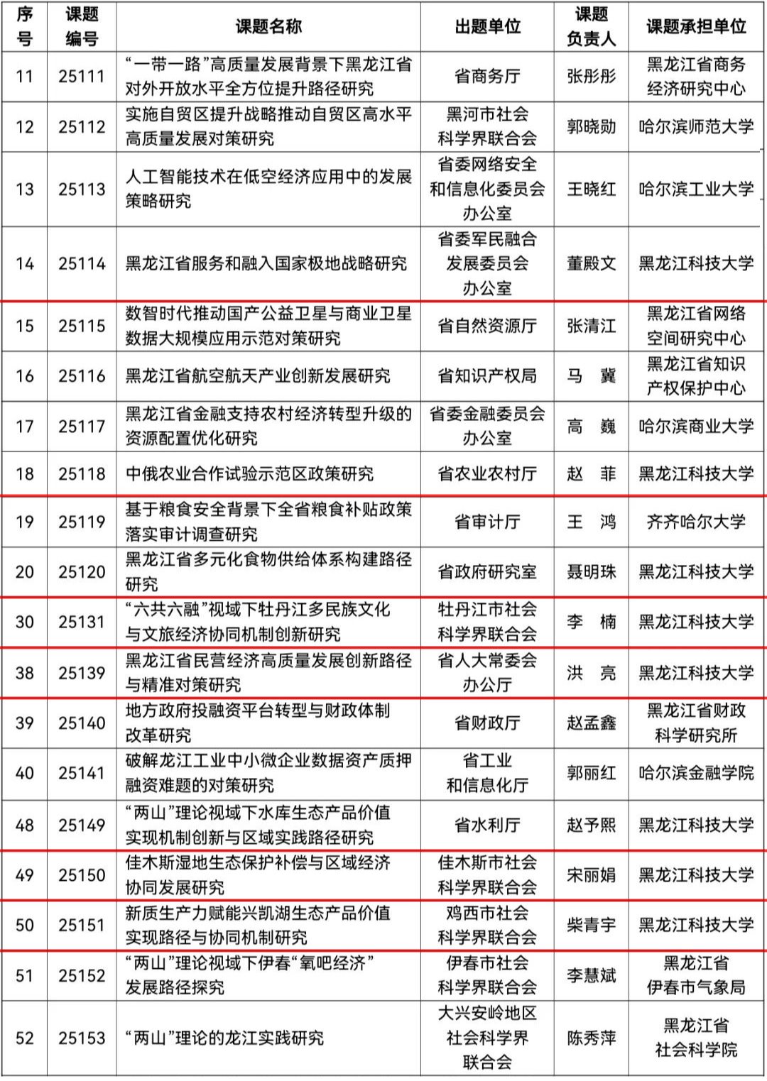近日,黑龙江省社会科学界联合会公布了2025年度黑龙江省经济社会发展重点研究课题中标名单,【官网】管理学院洪亮、董殿文、赵菲、赵予熙、宋丽娟、柴青宇,经济学院聂明珠,人文社会科学学院李楠共获批8项课题,占全省获批总数的13.6%,实现历史性突破。