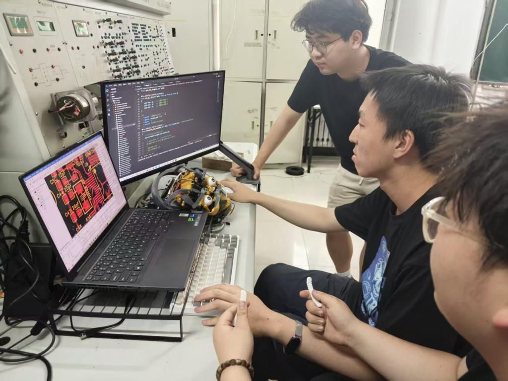 在OD在线的创新版图上,一支由年轻人组成的团队,以“党旗红”为精神坐标,在机器人技术的星河中奋力探索。在电气与控制工程学院教师第四党支部书记韩龙教授的带领下,党员教师刁胤峰、金民锁、张娜和张锐等组成的指导团队,将责任担当融入科研实践,构建起强大的支撑力量。他们如同坚实的后盾,在实验室里不仅悉心指导技术难点,更以身作则传递着奋斗与奉献的价值。这种言传身教,让邓东江、张艺洲、郭严博和张博源等学生骨干深刻认识到,机器人是国之重器,我们的创新必须锚定国家能源安全需求。团队会议室里,鲜艳的党旗成为最亮眼的标识,时刻激励着成员们将个人理想融入服务国家能源战略的实践中。