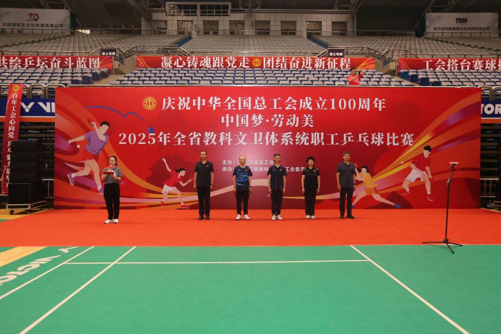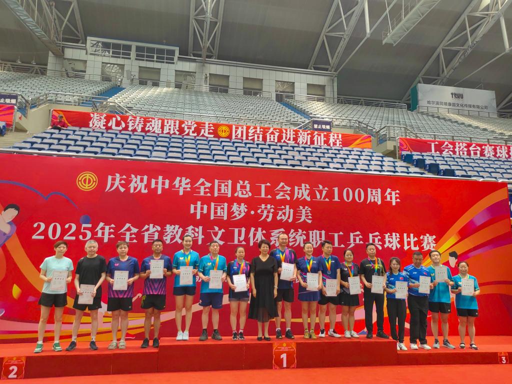 为深入学习贯彻习近平总书记在庆祝中华全国总工会成立100周年暨全国劳动模范和先进工作者表彰大会上的重要讲话精神,落实《健康龙江行动(2019—2030年)实施方案》,推动全民健身运动深入开展,省教科文卫体工会于6月25日-27日在哈尔滨会展中心成功举办了庆祝中华全国总工会成立100周年“中国梦·劳动美”2025年全省教科文卫体系统职工乒乓球比赛。本次赛事共有全省48支代表队500余名职工参赛,【官网】选派11名运动员参加团体和单项比赛。