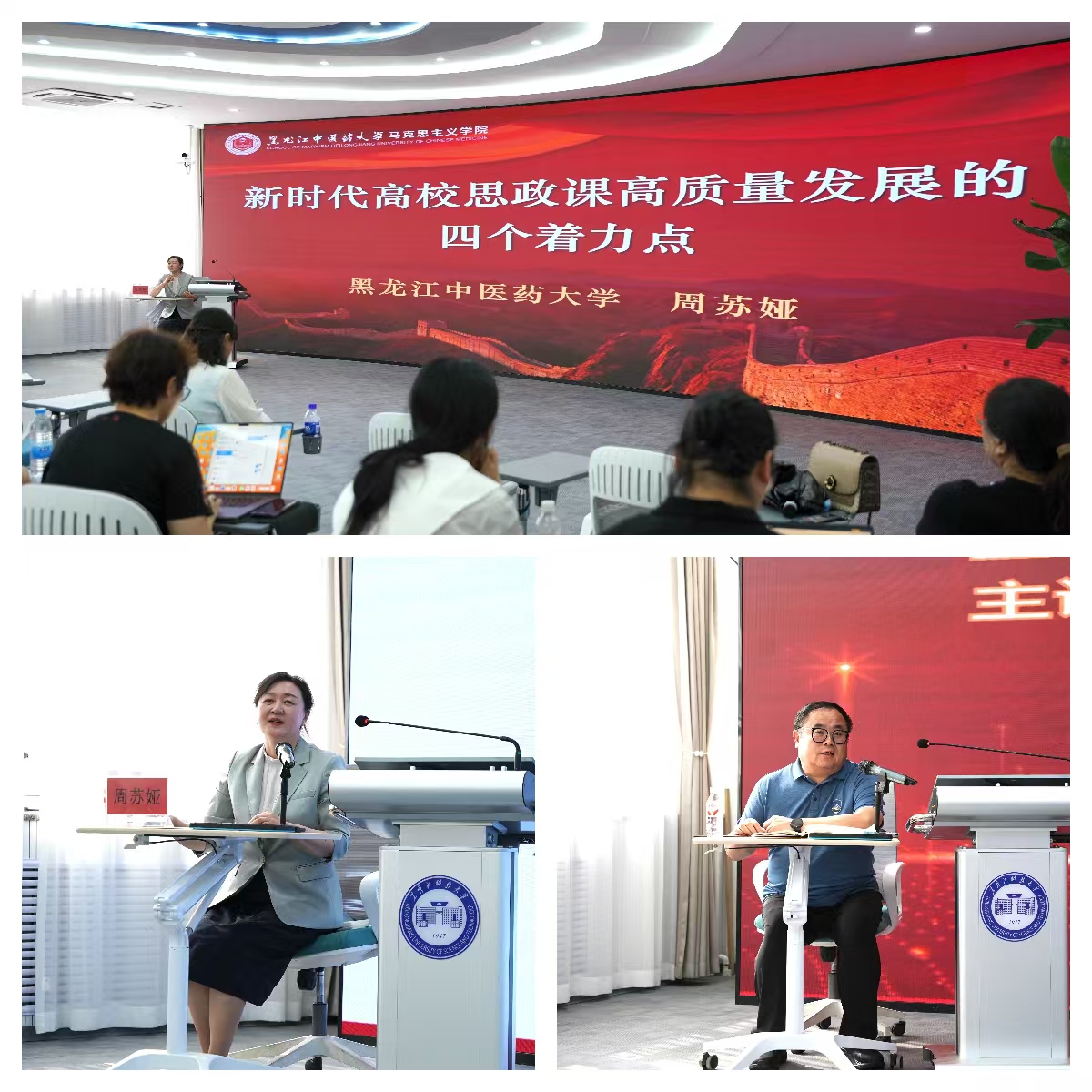 以“优秀教师交流示范”为先导,传承教学经验。马超群、吴琼、赵丹三位近年来在省级思政课比赛中脱颖而出的青年教师,分享了自己的宝贵经验;庄得宝、王娟两位资深教师则通过公开课示范,展示了精湛的教学技艺;省级思政课名师、黑龙江中医药大学马克思主义学院院长周苏雅更是亲临现场作专题辅导,为全体教师传经送宝。