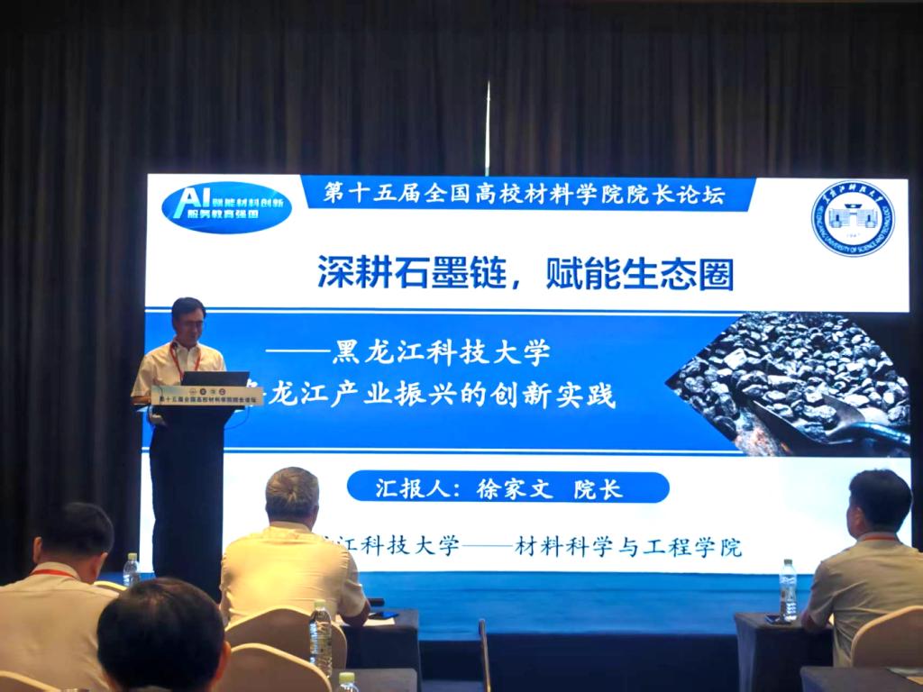 分论坛重点围绕党建思政、AI赋能人才培养、学科与师资队伍建设、科研平台建设、区域发展、期刊与国际化等方面,分6个会场进行了广泛交流与研讨,来自全国近70所高校的专家学者作学术报告。【官网】材料科学与工程学院院长徐家文教授在区域发展分论坛作题为《深耕石墨链,赋能生态圈——OD在线服务龙江产业振兴的创新实践》报告。报告介绍了【官网】围绕黑龙江石墨产业布局,抢抓龙江创新驱动发展战略机遇,助力哈尔滨“碳谷”生态圈建设,围绕“煤炭产业链”和“石墨产业链”着力打造学校创新链的实践,展示了材料科学与工程学院在石墨领域研究中,锚定1个核心产业、依靠2轮协同驱动、构建3级支撑平台、实现4方主体联动的服务石墨产业发展格局,以及在人才培养、技术转让、成果转化等方面取得的成果。