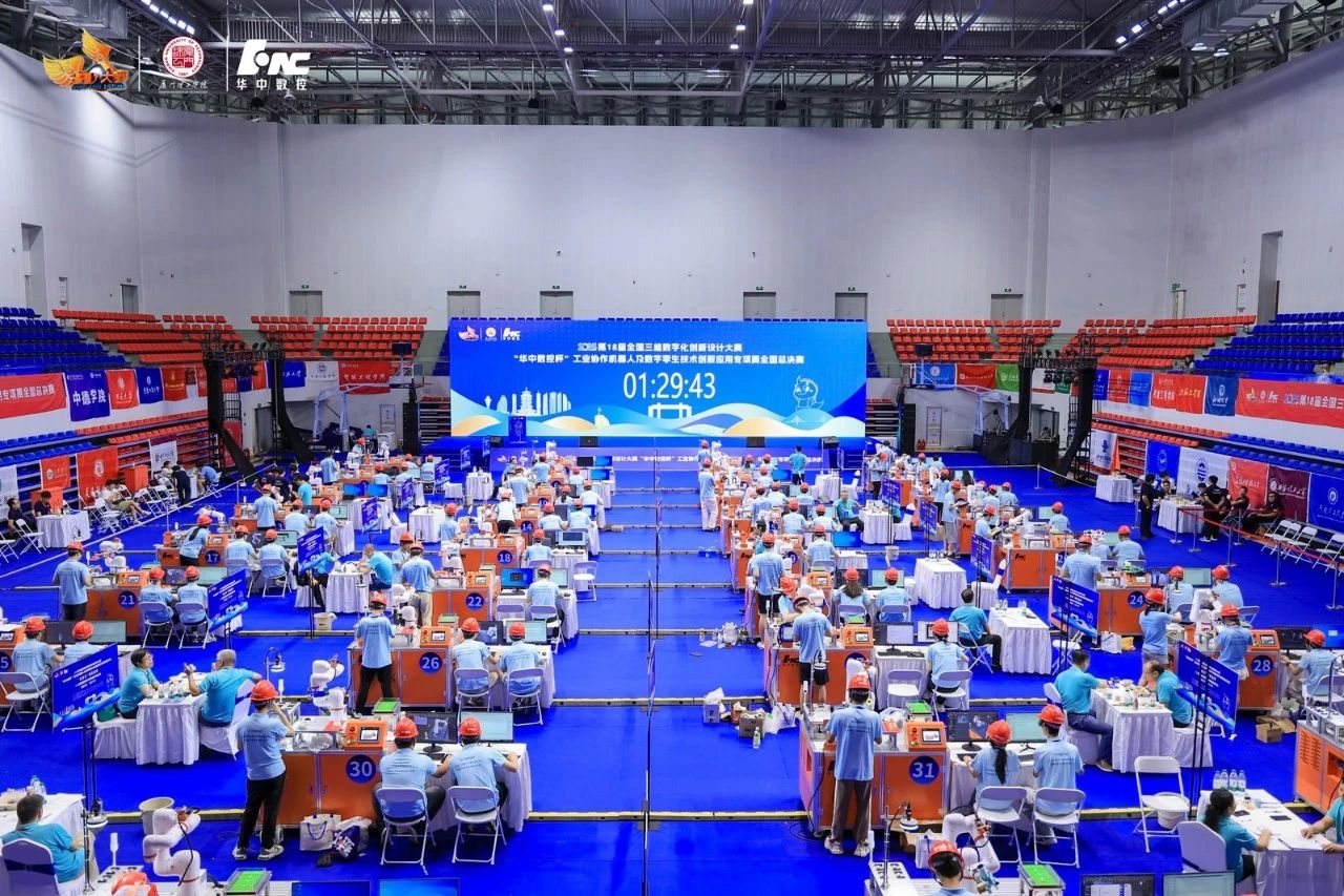 全国三维数字化创新设计大赛(简称“全国3D大赛”)是全国普通高校学科竞赛排行榜(A类)的重要赛事,已连续成功举办至第18届,“华中数控杯”工业协作机器人及数字孪生技术创新应用专项赛是全国三维数字化创新设计大赛赛项之一。赛项主要考察选手对工业机器人末端夹具创新设计与制造、工业协作机器人技术、数字孪生技术、PLC与HMI技术、机器视觉技术等综合应用能力,以真实的工业装备和应用环境作为赛场,考察参赛选手解决机器人领域复杂工程问题的综合能力。