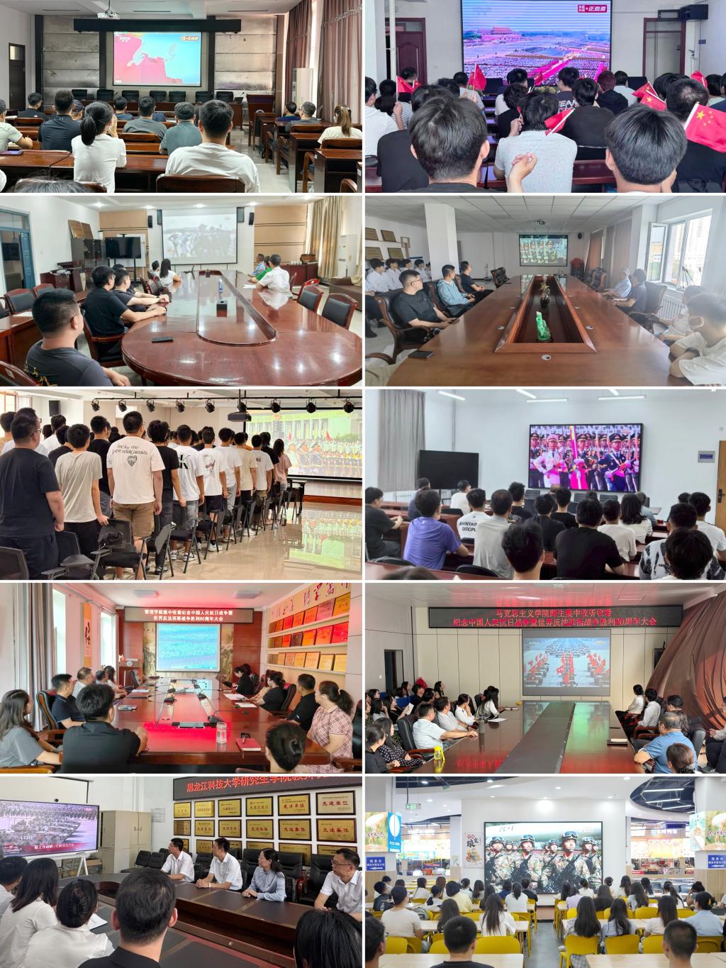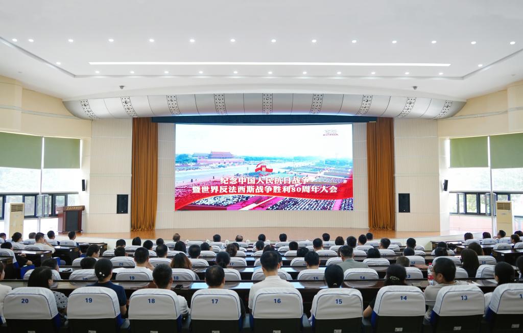 旌旗猎猎,号角激昂。9 月 3 日上午 9 时,纪念中国人民抗日战争暨世界反法西斯战争胜利 80 周年大会在北京天安门广场庄严举行。中共中央总书记、国家主席、中央军委主席习近平发表重要讲话并检阅受阅部队。【官网】以这场震撼人心的盛典为契机,精心组织全校师生收看直播盛况,将鲜活而深刻的爱国主义教育课,送到每一位师生心中。