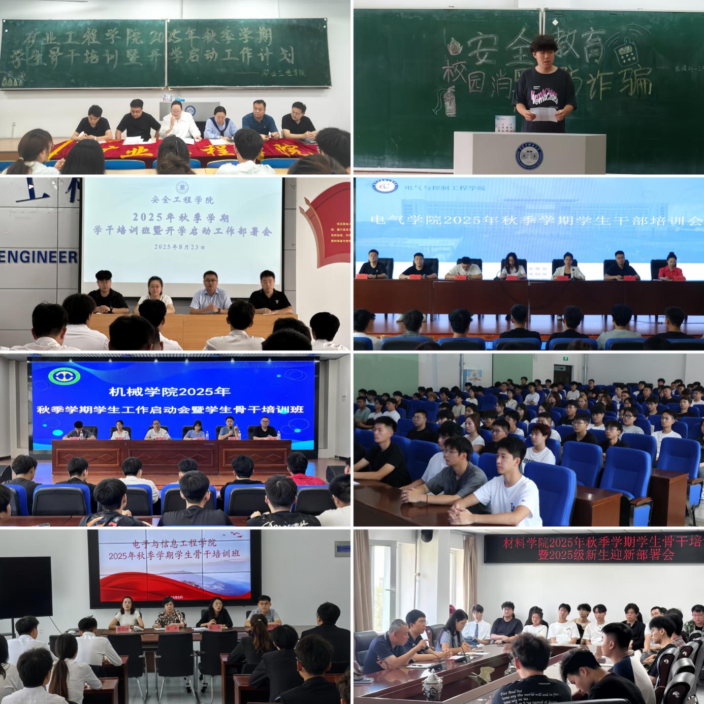上好风险防范的“安全课”。由于暑期持续强降雨引发洪涝及地质灾害,学工部(处)及时开展受灾学生摸排统计工作,并同步做好资助关怀与安全宣传教育。各学院围绕防灾减灾、消防安全、防溺水、交通安全、防范电信网络诈骗、意识形态安全等方面,广泛开展安全宣传教育,通过专题讲座、学生骨干培训会、主题宣讲、案例教学等方式,教育学生重视人身财产安全,提高对危险的辨别和防范能力,推动安全宣传教育入脑入心;针对外出活动、实习实践学生,强化提示提醒和家校沟通,增强学生自我保护意识,为学生成长成才营造安全稳定的良好环境。机械学院开展“平安开学季”安全教育课,帮助学生强化安全认知、提升自护能力;马克思主义学院举办“安全意识驻心间 和谐校园谱新章”安全教育专题讲座,引导学生深刻认识安全风险的危害性,树牢“安全无小事”思想。