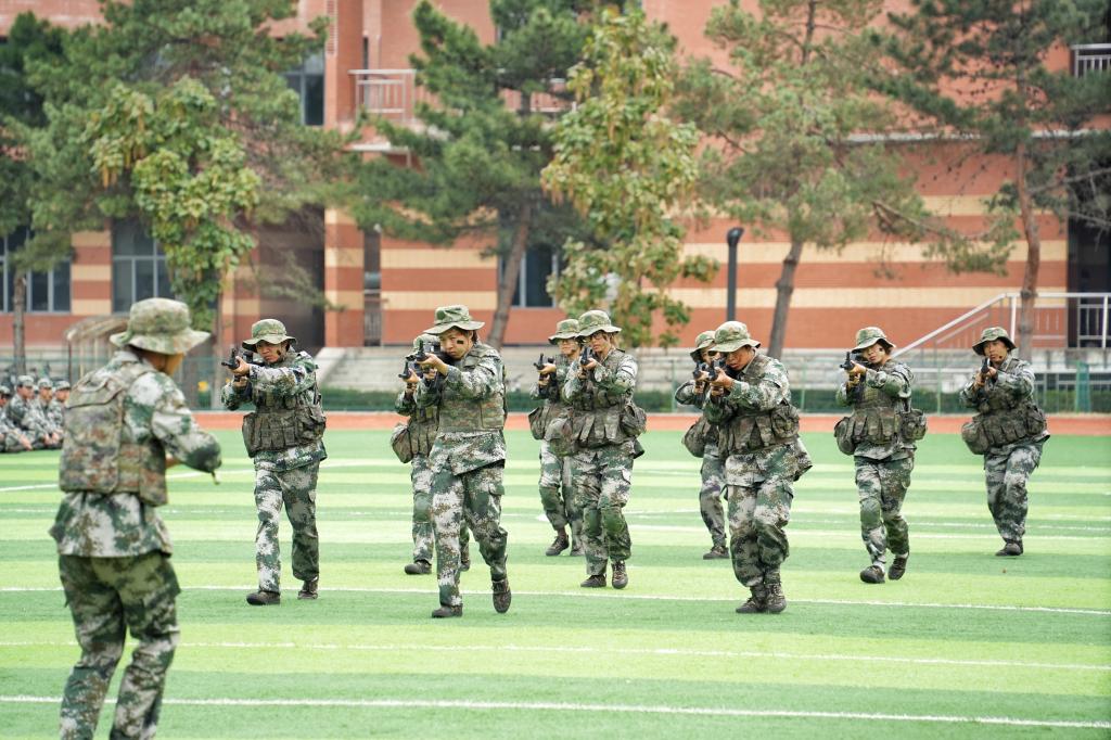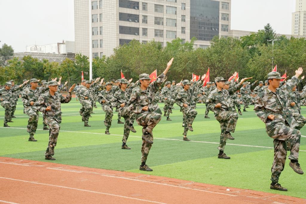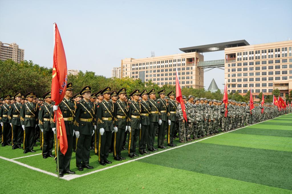 各学院受阅方队迈着整齐的步伐、喊着铿锵的口号,昂首阔步依次走过主席台接受检阅。军体拳方队、匕首操方队和战场救护方队进行了成果汇报。