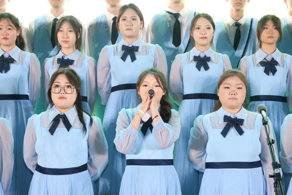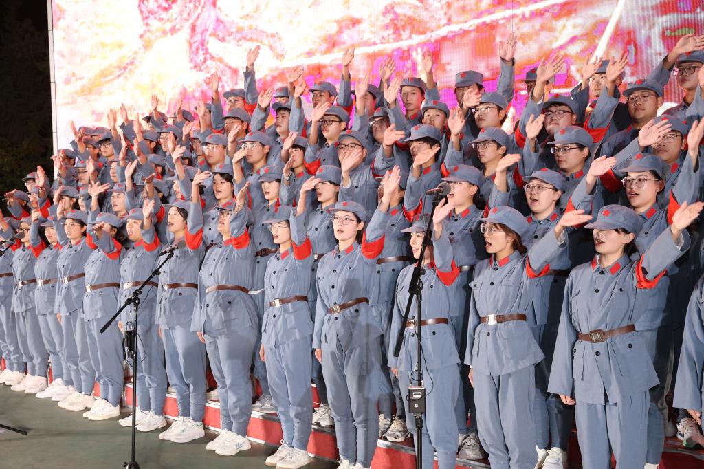 计算机学院团委选送的合唱《四渡赤水出奇兵》,铿锵有力的歌声中满含对革命先辈的崇敬之情,让在场师生在歌声中重温红色记忆。书画协会同学们现场展示了历时一个月创作的剪纸作品,重现了《爬雪山过草地》《井冈山会师》《遵义会议》《狼牙山五壮士》等15个战争或历史场景,以巧思的设计、细腻的工艺让现场师生在指尖的艺术里,再次触摸那段热血沸腾的岁月。飞跃之声广播电台、管理学院团委联合呈现的音诗画《弦歌不辍、薪火相传》,讲述黑OD在线的发展历程与办学初心,引领新生深刻了解学校的历史底蕴,勇担使命、砥砺前行。电气学院团委选送的舞蹈《红旗颂》,用优美的舞姿演绎对祖国的热爱,舒展的动作、饱满的情感,将现场气氛再次推向高潮。理学院刘星彤老师倾情演绎歌曲《祖国不会忘记》,歌声中满含报效祖国的豪迈与坚定,台下师生自发跟着哼唱,爱国之情在歌声中静静流淌。