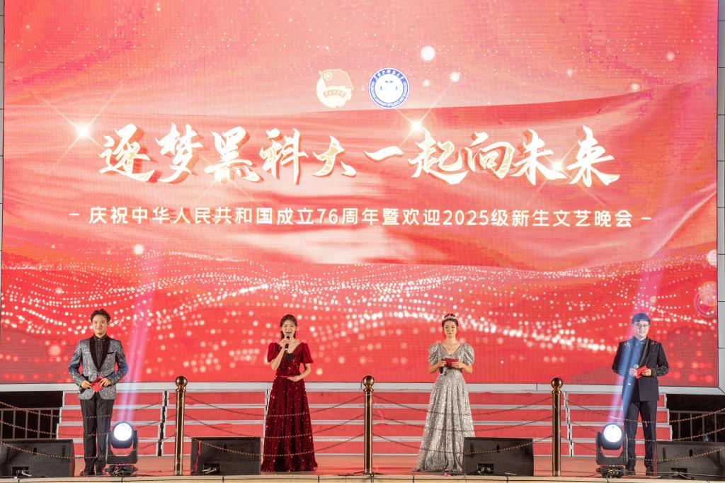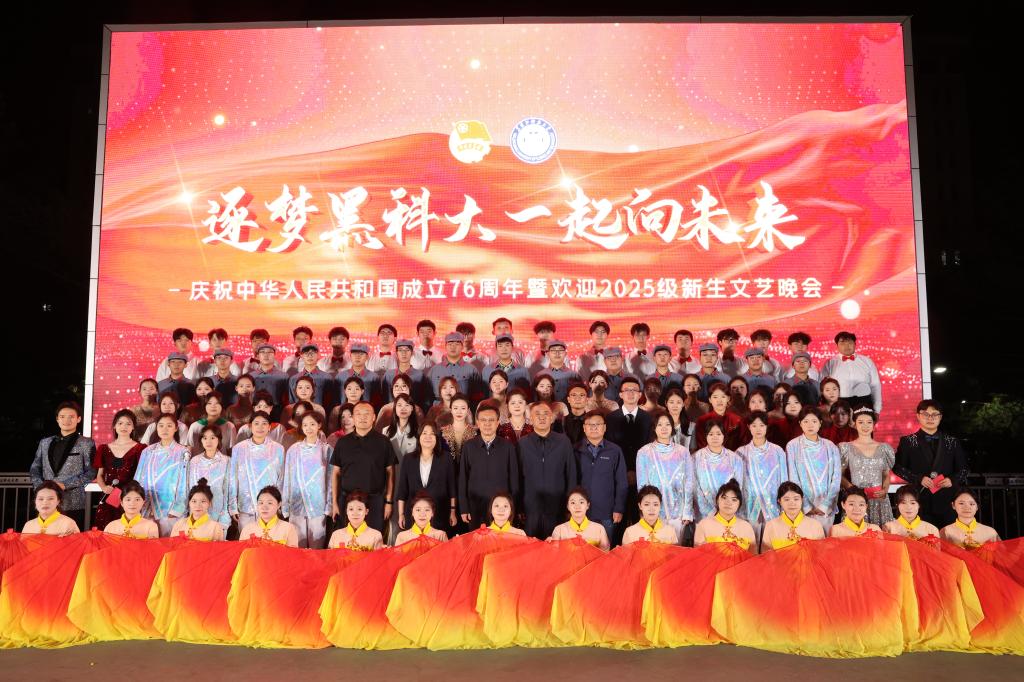 为庆祝中华人民共和国成立76周年,引领2025级新同学以昂扬向上的精神风貌和奋发进取的姿态开启人生新篇章,9月28日,学校在体育文化休闲广场举办“逐梦黑OD在线、一起向未来”庆祝中华人民共和国成立76周年暨欢迎2025级新生文艺晚会,校党委书记周宏力,党委副书记张宝成,副校长、党委常委谭旭红,学校相关部门负责人,各学院党委书记、副书记,全校专职学生工作干部与4500余名新生齐聚一堂,共同欣赏这场融合青春活力与家国情怀的视听盛宴。