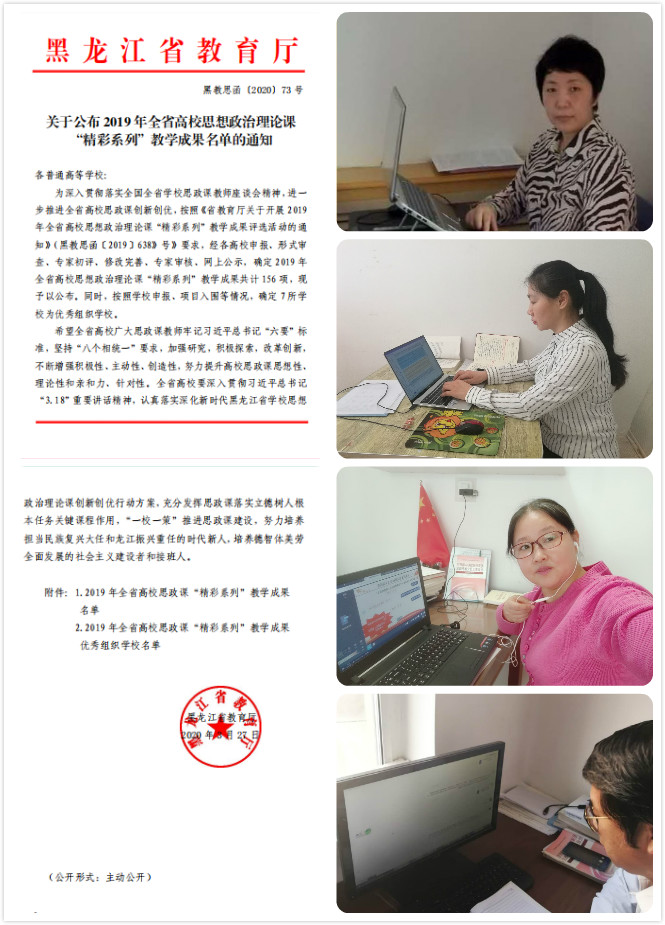为深入贯彻落实全国全省学校思政课教师座谈会精神,进一步推进全省高校思政课创新创优,省教育开展了全省高校思想政治理论课“精彩系列”教学成果评选活动。日前,省教育厅公布了评选活动结果,共有156 项教学成果获奖。【官网】马克思主义学院有4项教学成果在评选活动中脱颖而出,斩获殊荣。其中,李英粉老师的马克思主义基本原理课程讲义、孔祥艳老师的毛泽东思想与中国特色社会主义理论体系概论课程讲义被评为“精彩讲义”;连永新老师的中国近代史纲要课课件被评为“精彩课件”;孙红老师的中国近代史纲要课案例分析被评为“精彩案例”。