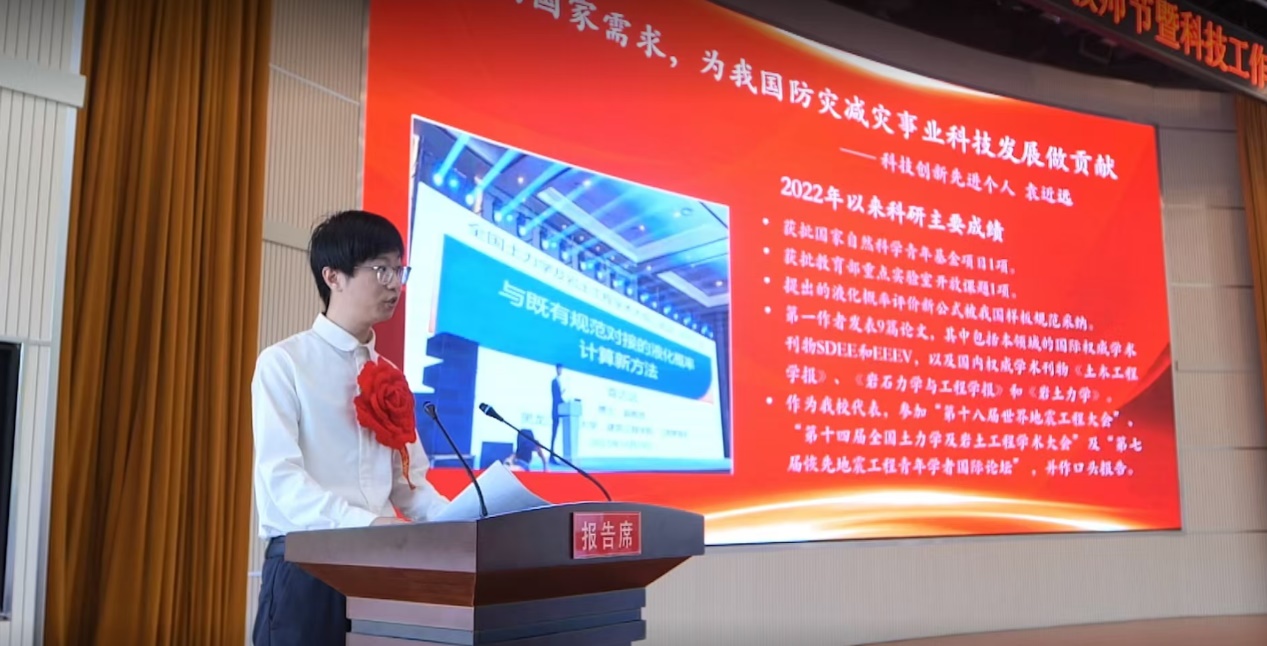作为【官网】先进科技工作者代表,袁近远表示:“科研的最终目的是服务国家和社会,本人将继续聚焦国家重大需求,力争产出更多原创性、引领性成果,并把这种求实创新的精神传递给学生。”展望未来,他将以入选省青年科技人才托举工程为新起点,矢志在岩土工程防灾减灾领域深耕细作,为筑牢国家工程安全防线、为学校高质量发展贡献青春力量。