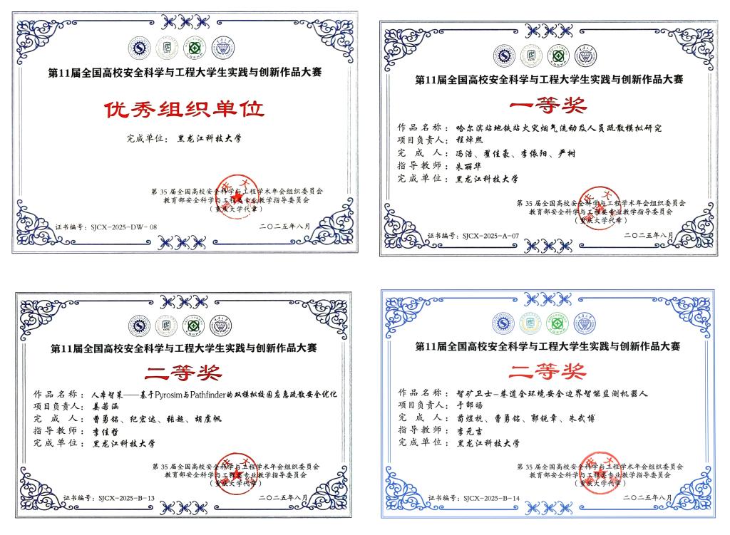 大会为第11届全国高校安全科学与工程大学生实践与创新作品大赛获奖者颁奖,【官网】荣获“优秀组织奖”,安全工程学院学生在此项大赛中获一等奖1项,二等奖2项、三等奖4项。