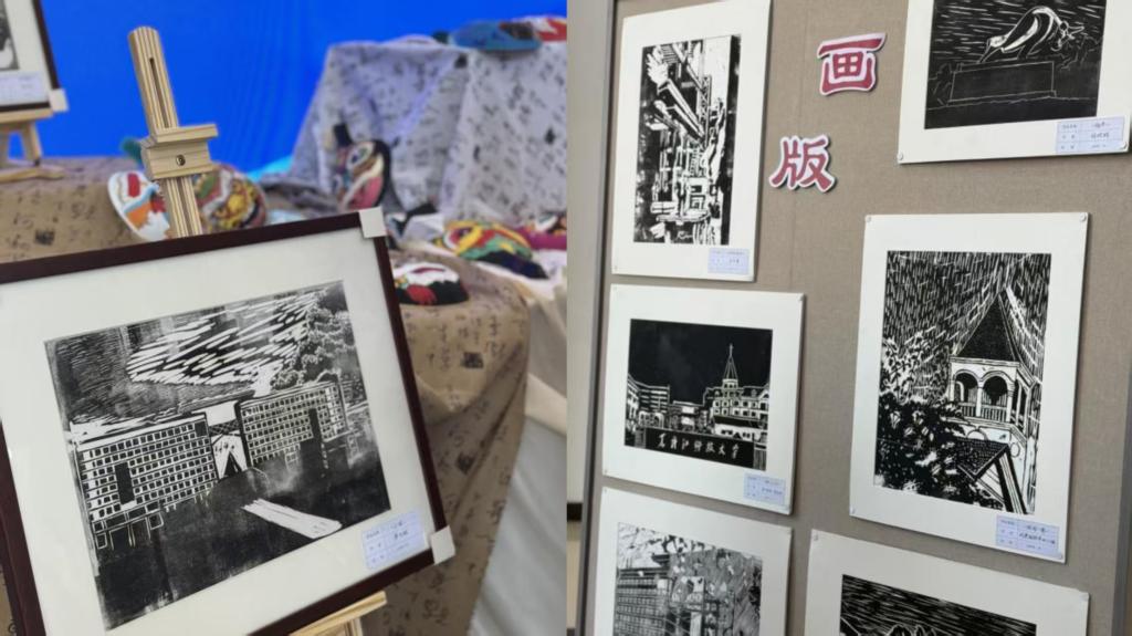 校史版画系列以刀为笔,将学校从艰辛初创到服务能源报国的红色历程精准镌刻,使黑OD在线精神谱系实现可视化呈现;国粹脸谱作品在传统纹样基础上融入现代设计语言,非遗马勺则以浓烈色彩诠释传统美学与龙江坚韧质朴的地域精神在此碰撞共生;数码传情创作专区更显跨学科活力,学生们用镜头中的“数码美景”演绎着古今美学的奇妙嬗变,印证了学校“五育并举”的人才培养体系下课程思政的实践成效。
