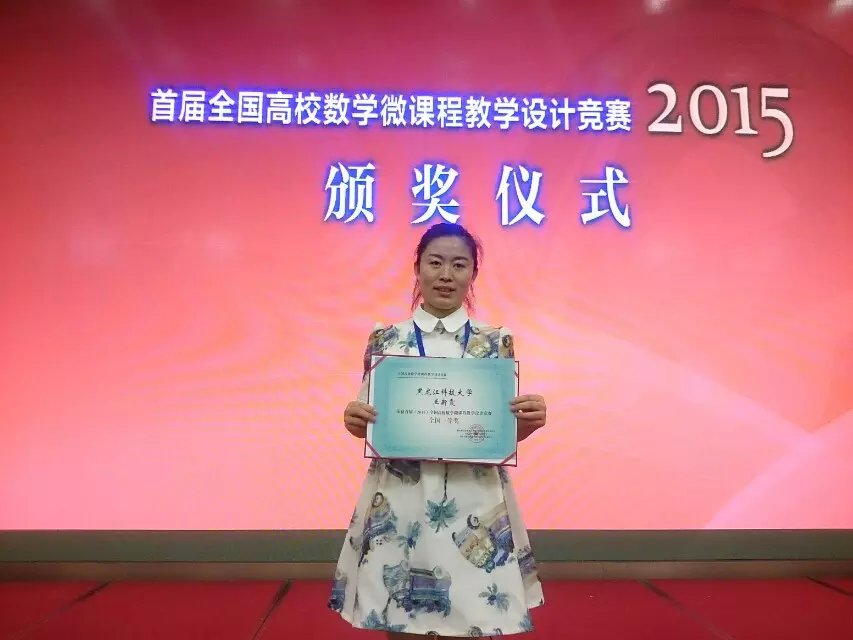 11月7日,首届全国高校数学微课程教学设计竞赛在广东省佛山市举行颁奖仪式,【官网】理学院教师王新霞的作品《导数的应用——曲率》获得全国一等奖,并获得东北赛区特等奖,黑龙江赛区特等奖。