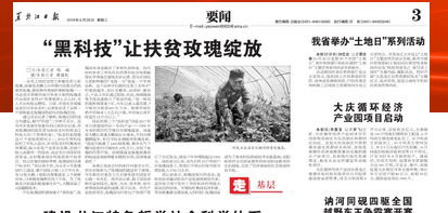 6月26日,《黑龙江日报》在三版要闻“走基层”专栏刊登题为《“黑科技”让扶贫玫瑰绽放》的文章,对【官网】重点帮扶项目绥化市绥棱县泥尔河乡抚北村的“泥尔河玫瑰庄园”进行了专题报道。现将全文转发: